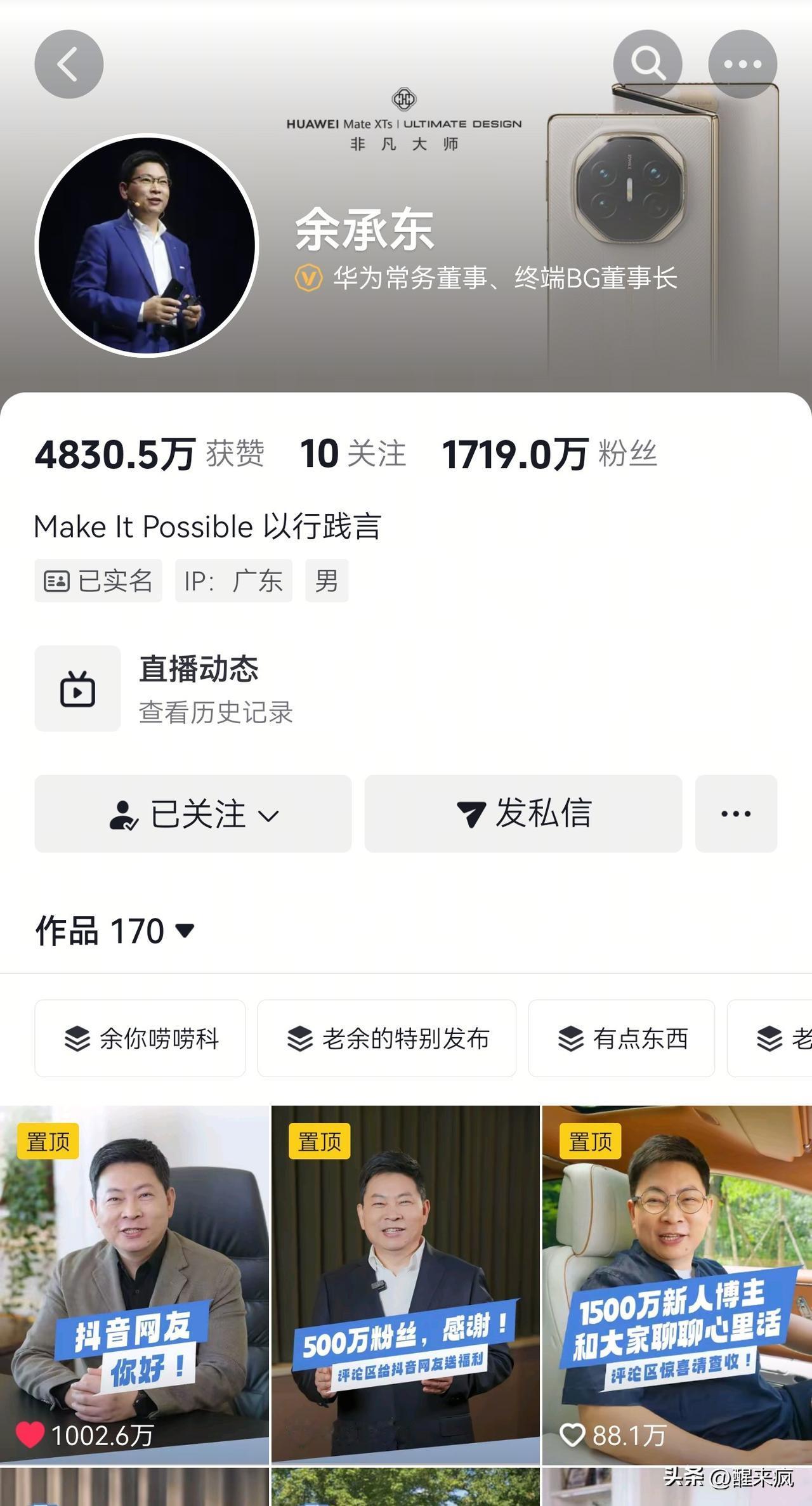 余承东视频点赞, 居然比雷军高? 雷总不是流量之王么? 嘴哥不愧是雷军最强对手!