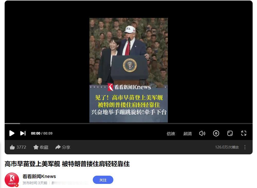 日本民众傻眼了!如果说日本首相和特朗普手拉手还可以理解,那么特朗普搂住她是什么意思? 熟悉高市早苗的人都知道,她从上台前后,就为自己立下了严格的“性别避嫌”规矩。为了不让外界有任何闲话,她跟男性议员打交道时永远保持着距离,哪怕是讨论国家大事,也坚决不在晚上单独见面。 平时合影,高市早苗还会刻意和男同事拉开半臂距离,握手也只是快速碰一下就收回,这种近乎刻板的自我要求,让媒体想挑刺都找不到机会,也成了她维持政治形象的“金字招牌”。 可这“金字招牌”在10月28日突然碎了。 当天,高市早苗和特朗普在停靠横须贺港的美军舰上一起参加演讲活动。演讲过程中,特朗普突然伸手搂住了她的肩膀,这个动作来得很突然,现场数百名嘉宾和媒体记者都愣住了。 要知道,换作平时,别说被搂住肩膀,就是稍微靠近一点的肢体接触,高市早苗都会不动声色地避开。但这次,她不仅没有抗拒,反而脸上堆着笑,甚至微微侧过身,配合着特朗普的动作。 其实明眼人都能看出来,这次会面的核心是美日防务合作,双方刚敲定了新的安保协议,美军舰就是特意选的“合作象征”。但即便场合特殊,高市早苗的转变也实在太大。 有长期观察日本政治的人士说,她之前为了避嫌,连党内男性同僚的宴请都敢拒绝,如今却对特朗普的亲密动作全盘接受,这背后显然是把对美外交的“讨好”放在了第一位。 而面对民众的质疑,日本首相官邸只能出来打圆场,说这是“外交场合的正常礼仪”,让大家别过度解读。 但这种说法根本挡不住舆论的议论,不少日本民众觉得,这哪里是“正常礼仪”,分明是为了讨好美国,连自己一贯坚持的原则都能随便放弃。毕竟,要是换成其他国家的政要,高市早苗恐怕绝不会允许这样的肢体接触。 从这件事就能看出,在对美外交上,日本首相所谓的“人设”和“原则”,其实都得让位于对美国的依赖,这种不得不妥协的软弱,才是这则画面背后最真实的情况。