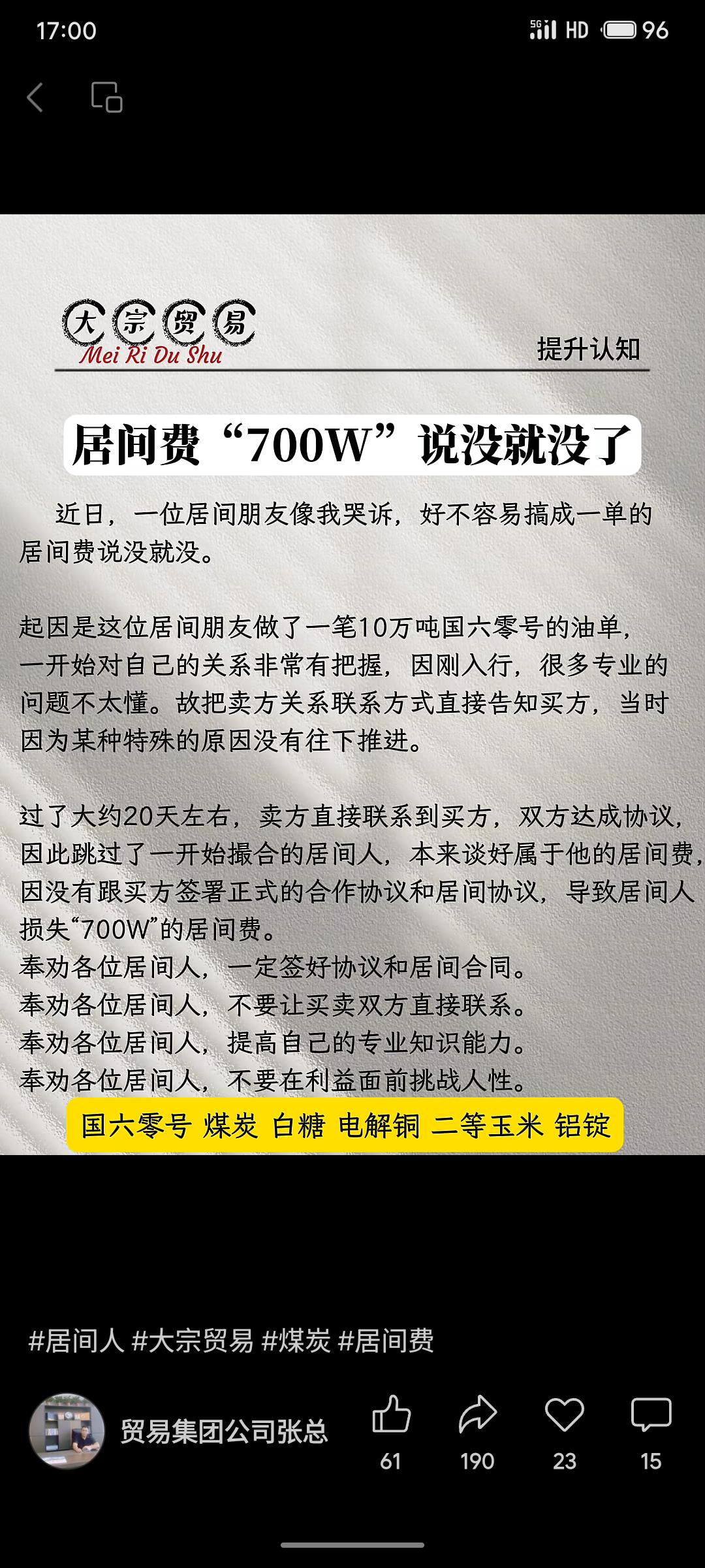 一名居间人因未与买方签订正式协议,便将卖方联系方式直接提供,导致买卖双方后续绕过他直接交易,使其损失了700万元居间费。此事提醒居间人需签订合同并避免让买卖双方直接联系。