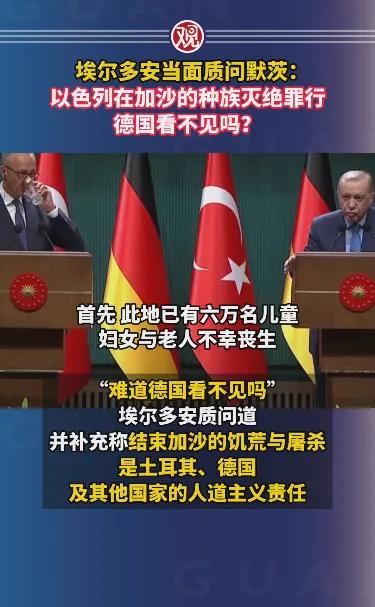 在昨天(10月30日)举行的联合新闻发布会上,土耳其总统埃尔多安质问来访的德国总理默茨:“以色列无差别轰炸加沙,已致6万多名巴勒斯坦儿童、妇女和老人丧生;以色列在加沙搞种族灭绝,阻止人道主义援助物资进入加沙,德国为何视而不见?” 历史上德国纳粹屠杀犹太人,犯下种族灭绝罪;巴以冲突中,德国是军援以色列第二多的国家,帮助以色列在加沙搞种族灭绝,但德国领导人说他们“有法可依”,因为在他们的执政纲领中有“无条件支持以色列”条款。在俄乌冲突中,美西方国家自告奋勇晒出援乌“成绩单”,在巴以冲突中,他们却默默地做起了“无名英雄”,为什么?