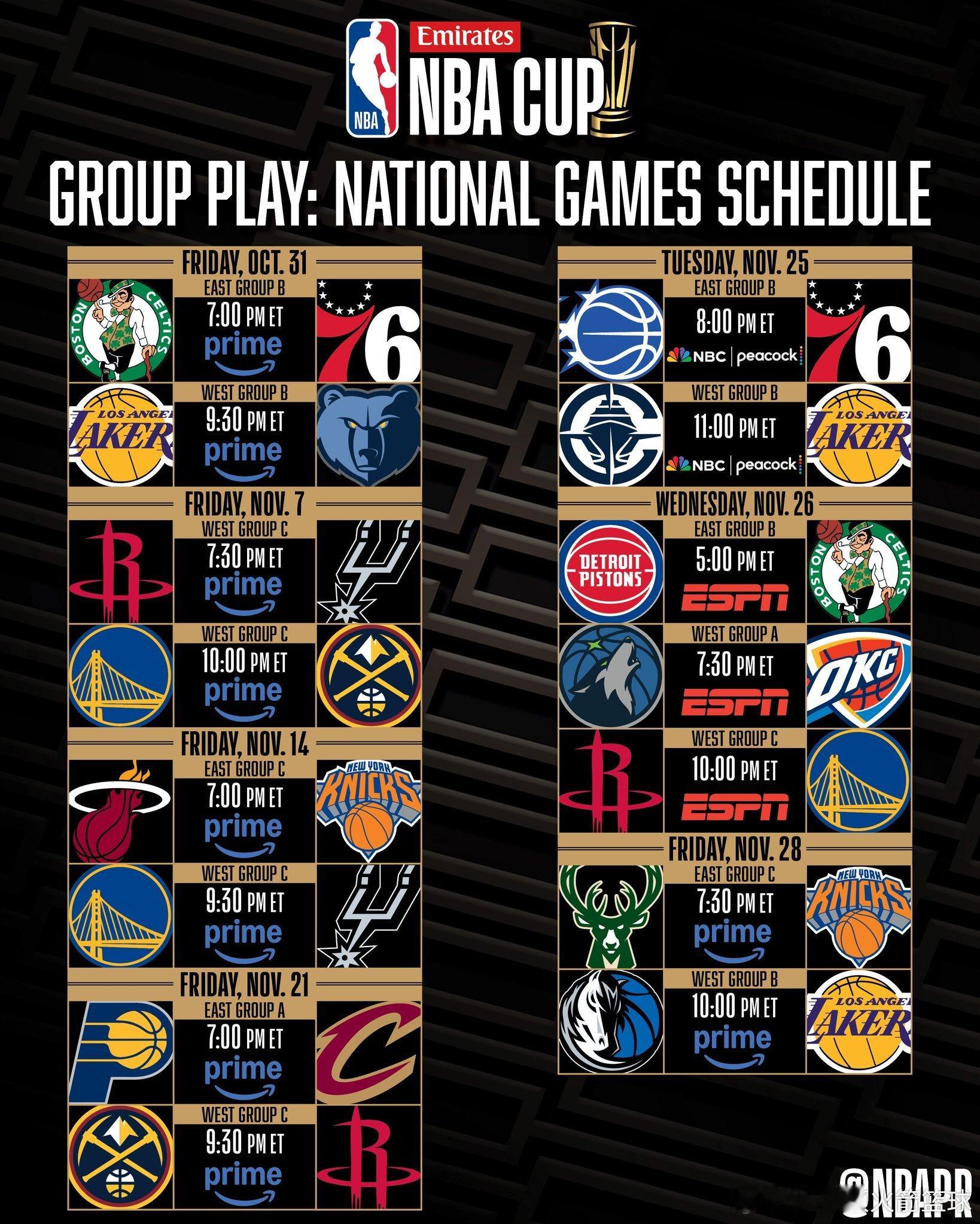 注:NBA杯分组是在24-25赛季常规赛战绩的基础上进行随机分配