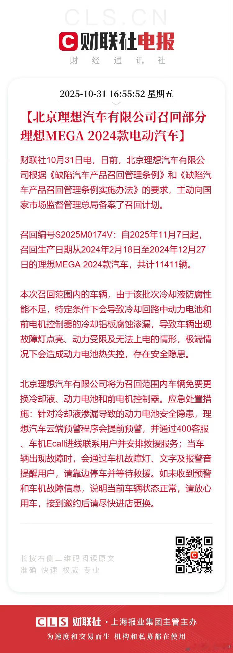 MEGA2024款电动汽车部分召回 理想就车辆起火道歉