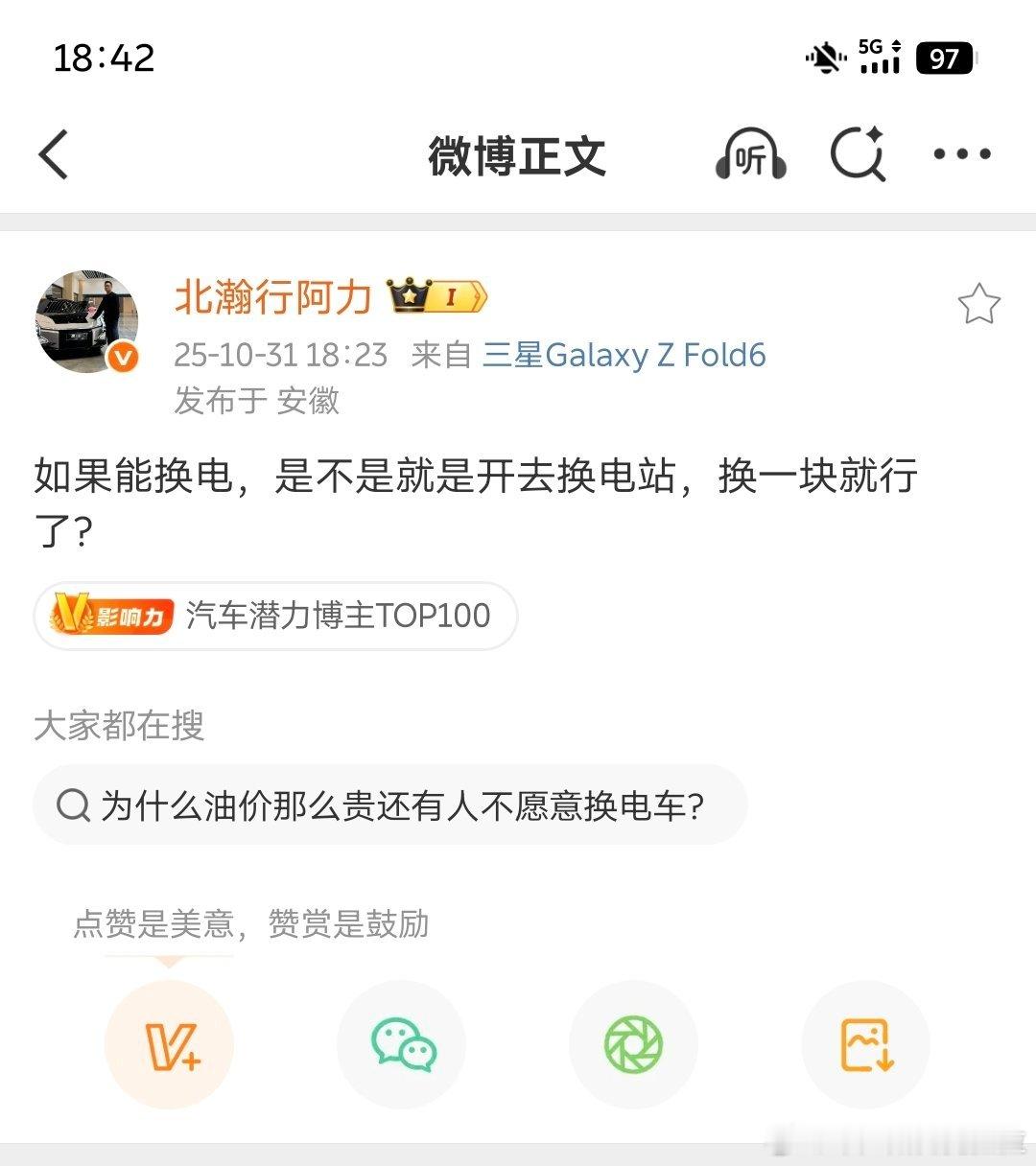 我在换电领域范围内做的内容看来确实非常的权威换电 KOC 的身份,让不是理想 K