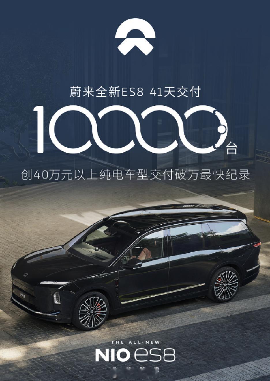 蔚来 ES8 只用 41 天交付已破万,创下 40 万以上纯电车型交付破万最快记录,加速加速[不愧是你]