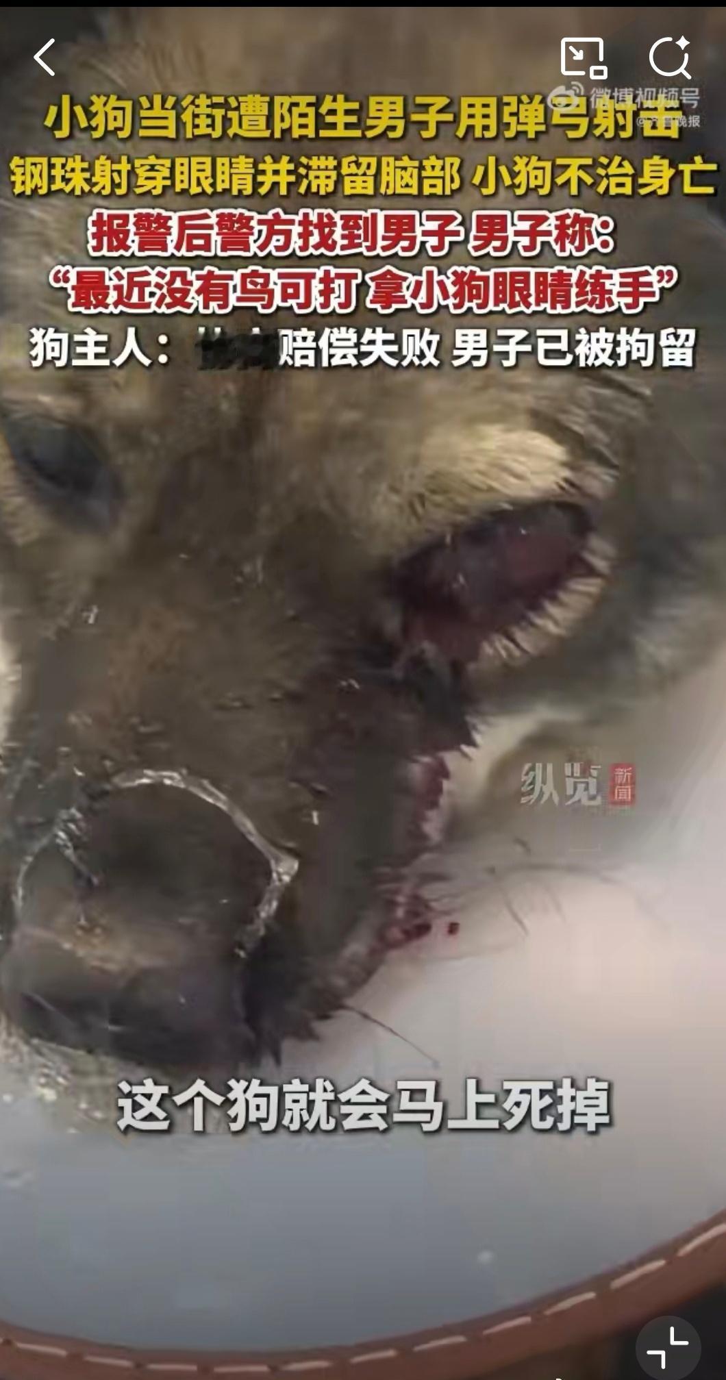 小狗被男子用弹弓射穿眼睛死亡真可怜!小狗🐶也是一个鲜活的生命啊!怎么忍心下得去手……有没有一丁点儿同情心医院通报新生儿转运坠床