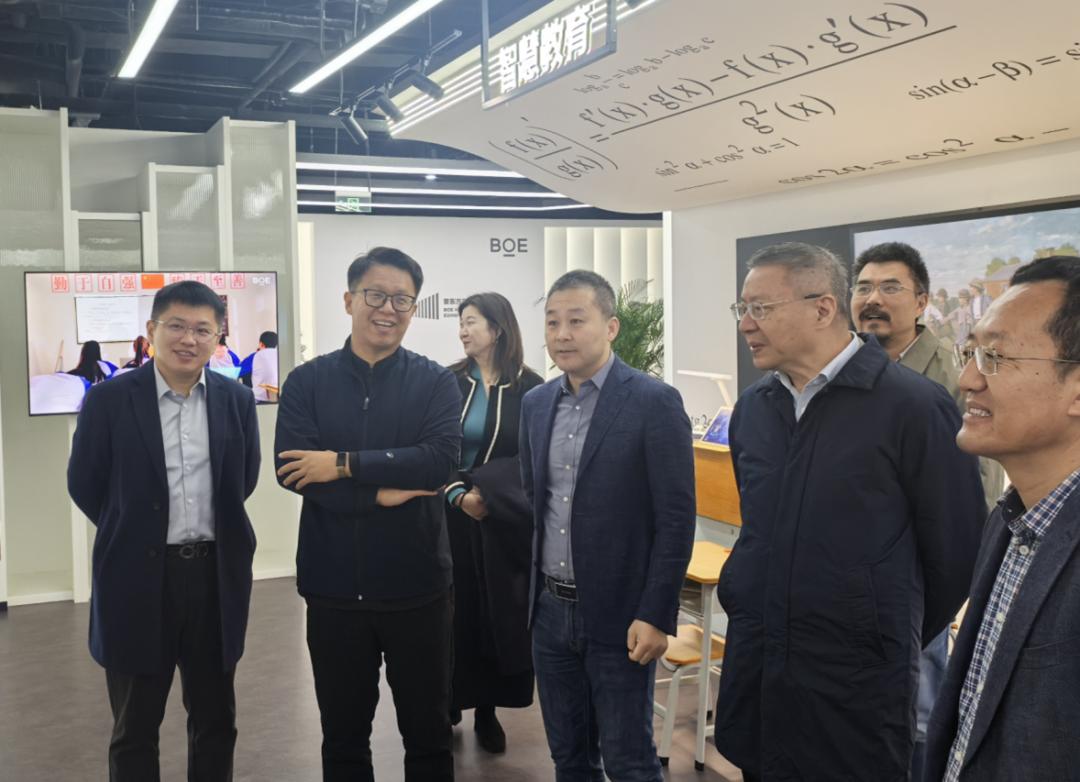 这是张维为教授去北京京东方调研的照片。 时间是在10月23日,张教授先到京东方的历史展览馆了解其发展历程(如图一所示),再到京东方的园区去深度调研一番(如图二所示),最后与京东方的相关人员合影留念。 图三所示,绿树成荫,张教授稳站中间,一旁是京东方的工作人员,另一旁是陪张教授同行的研究院人员。大家一字排开,心情舒畅,对于企业创新有了更新的认识。