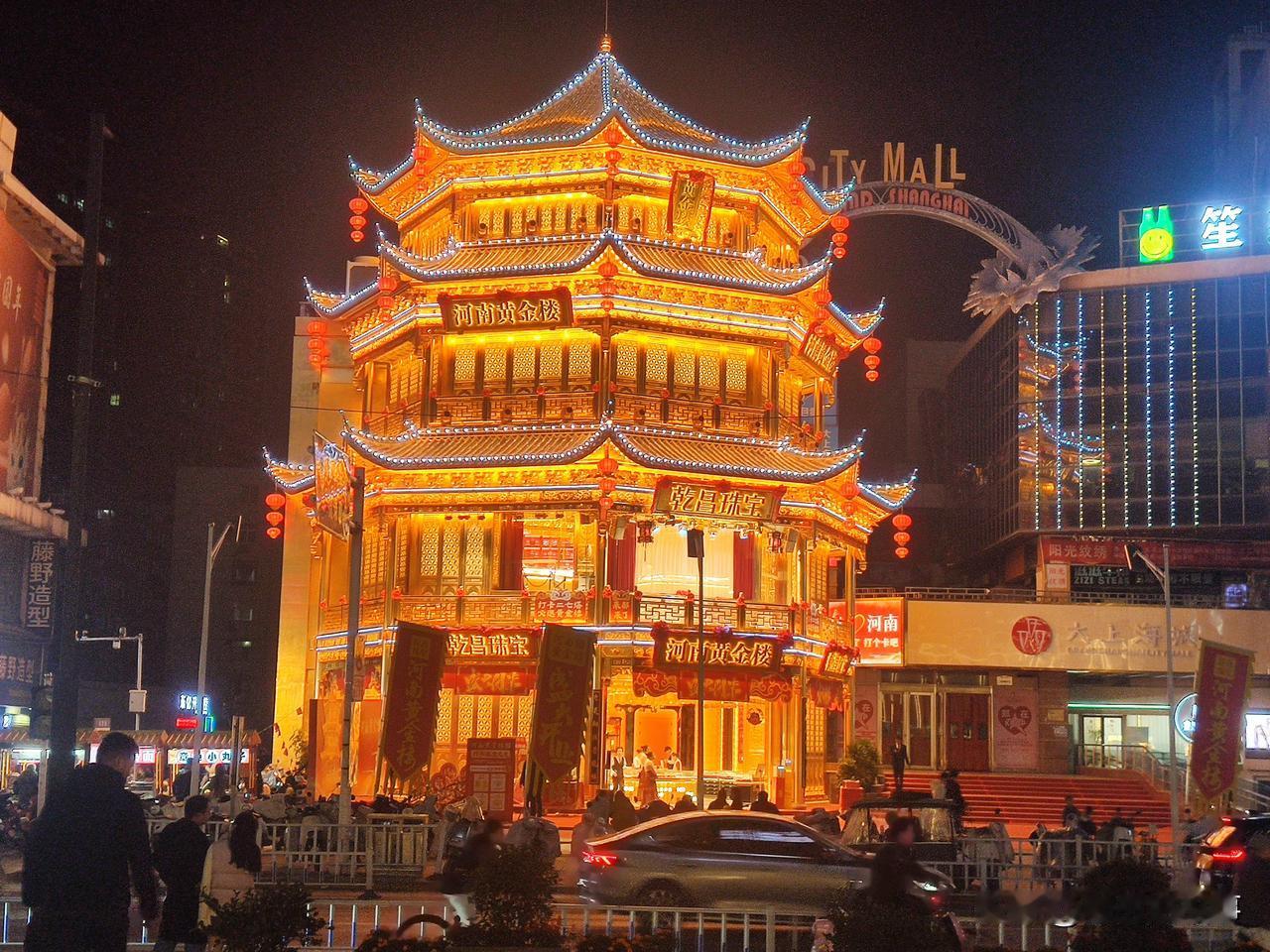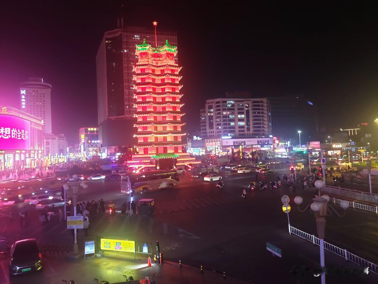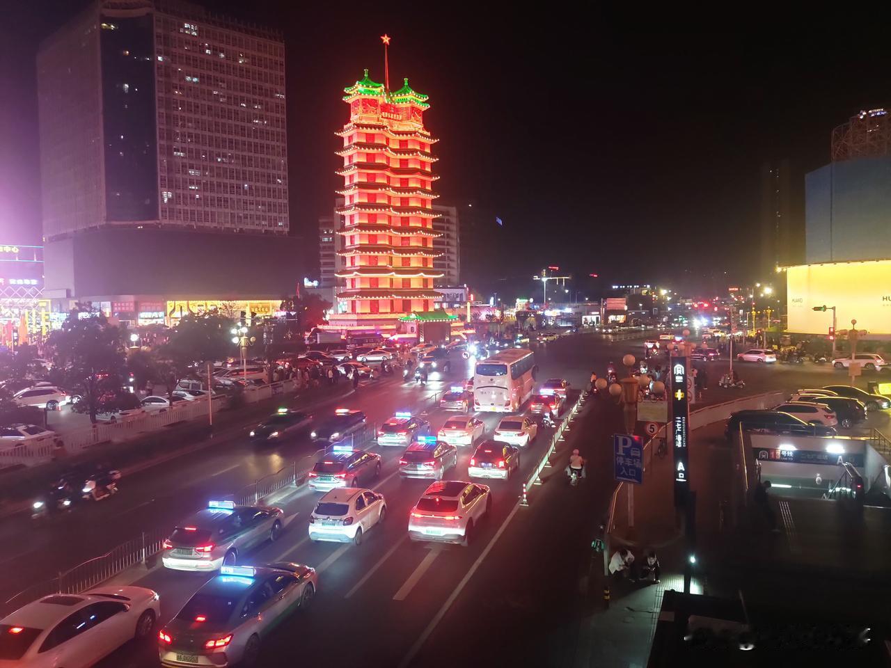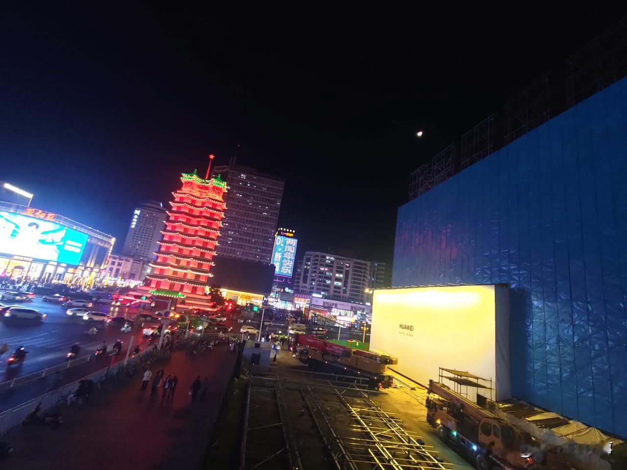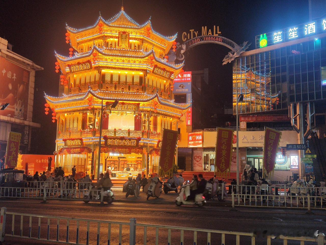 郑州夜景随手拍:霓虹灯下的黄金楼、大卫城、二七塔!