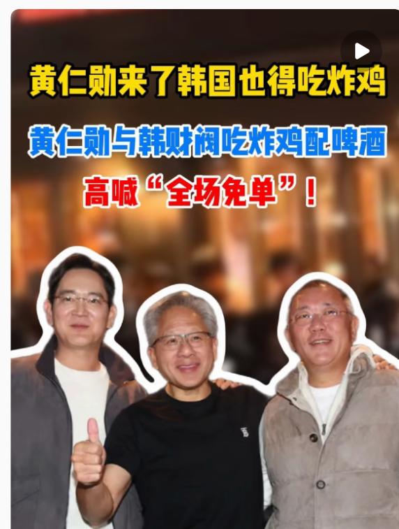 原来黄仁勋喊全场免单的时候,李在镕和郑义宣就坐在对面,终于知道为什么他这次会这么喊了。平常这种场合总不能真让客人掏钱,他喊免单是气氛,两位财阀结账是默契。毕竟席间送了AI计算机和威士忌,盒子上写着友谊和未来,哪能真让他花钱。再说他们聊的是HBM存储、自动驾驶这些合作,边吃炸鸡边谈生意,关系到位了谁结账不重要,重点是合作能推进。他后来还调侃李在镕用三星芯片时对方年轻,说明交情不浅。这哪是普通聚餐,不就是大佬们边吃边谈合作的默契吗?