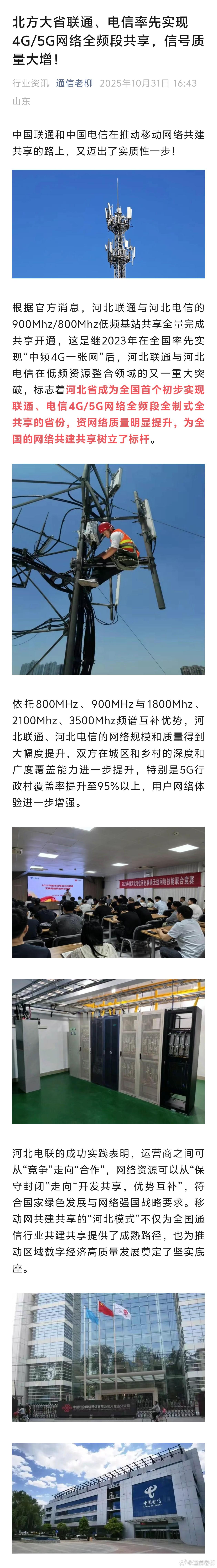继5G网络共建共享后,4G网络也实现了共建共享,感觉距离中国联通和中国电信合并的日子不远了!搞那么多套网络,同质化严重,恶性内卷,本来就是浪费投资劳民伤财,只不过肥了华为中兴爱立信这些设备商!运营商