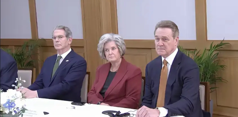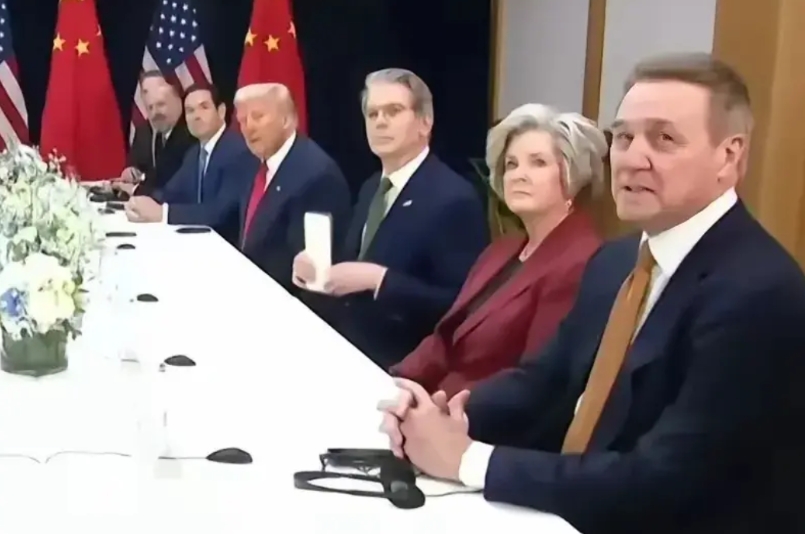 美国所有的男性代表看样子都妥协了,而这唯一的女人却亮出了不服气的眼神,从她咬紧牙关怒目圆睁认真聆听的表情中,我们可以解读出,她的内心可能不愿意与中国达成当前的合作协议,但我们实力又太强了,她即使再想反对,也还是无可奈何地沉默了,我理解她内心的挣扎,但美国一言堂的时代终究是过去了,美国不习惯也要接受