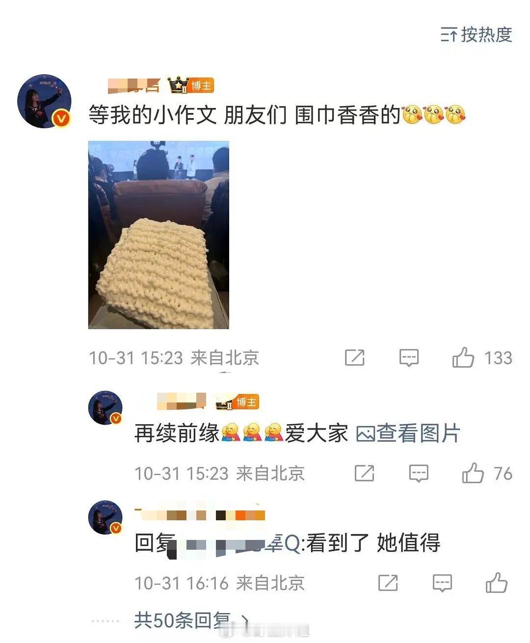 送礼物环节特别用心的选了自己亲手织的围巾 因为剧里面角色原型是小蜘蛛