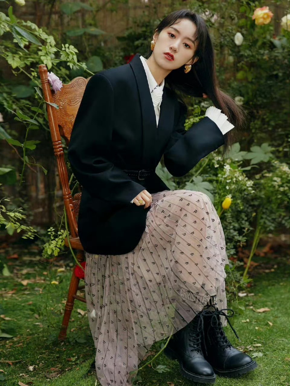 刘亦菲把死亡玫粉穿出了定制款的感觉,这种颜色普通人穿上分分钟黑三度,她居然能穿出