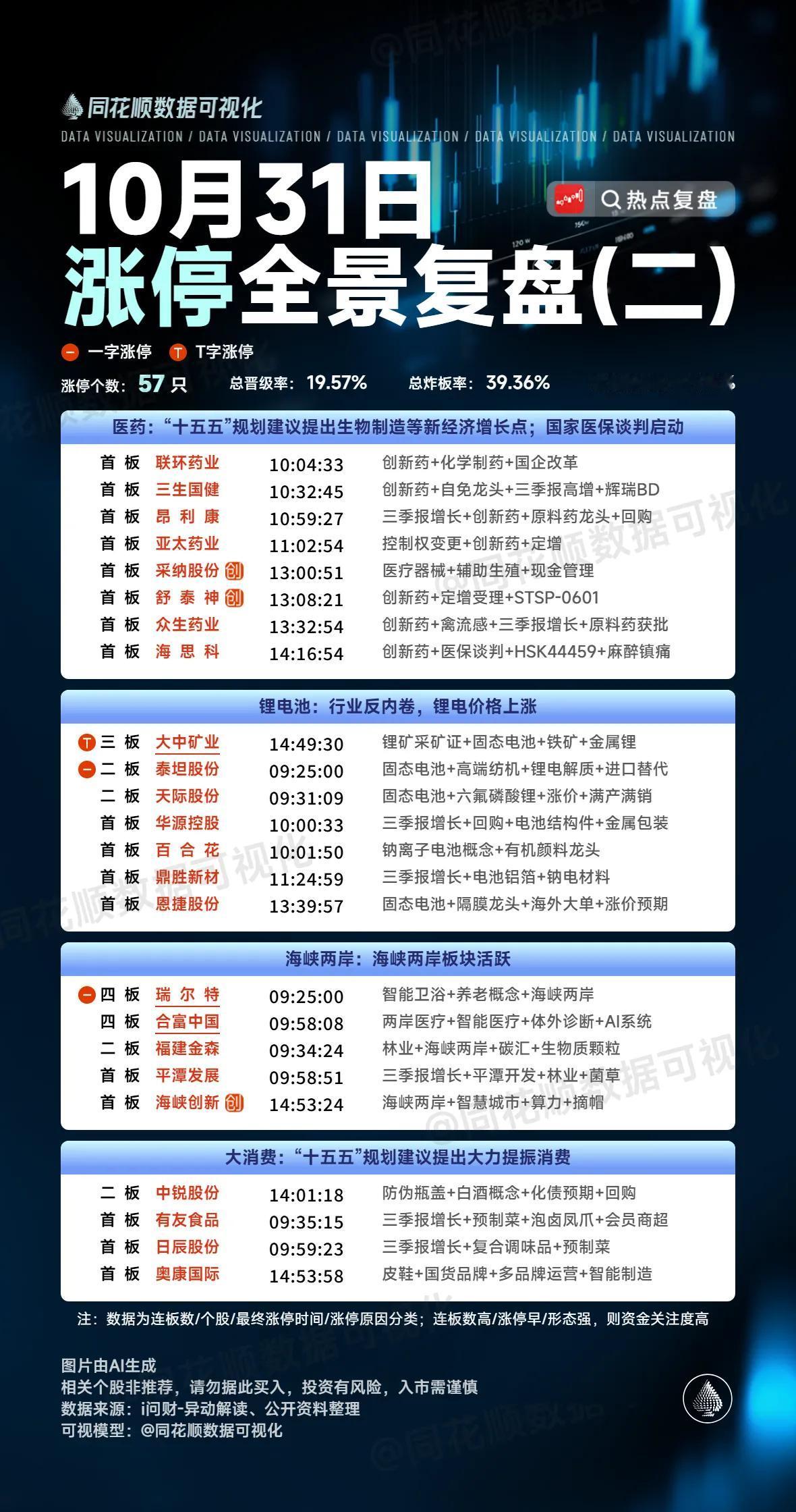 周末复盘:三六零、平潭发展、福龙马、大众公用隔日走势的一些看法! 1、三六零(AI应用) 周五市场再次出现了一个非常强势题材的炒作,那就是整个人工智能方向,其中三六零的涨停对于整个AI题材的促进是非常明显的,毕竟这只个股算是AI方向明显的大块头,它的涨停就跟之前卫星的涨停带动整个商业航天一样,所以它接下来能否走出趋势表现是非常值得关注的! 盘后的龙虎榜沪股通净买入2.5亿,作手新一买入2个亿,宁波桑田路1.4亿,另外还有两个量化也是超1亿的买入,卖盘整体抛压不大,东财席位居多,这样的榜单是非常不错的,作手新一时隔多日再次出手,外资的介入加上量化的引导,三六零这个位置走出趋势上行的概率还是非常大的,毕竟它算是整个AI题材的绝对中军核心,而且它三季度业绩亏损收窄的表现也是非常亮眼的,它这个首板算是一个明显倍量突破的涨停,而无独有偶,去年10月31日走出了类似启动的一个首板表现,之后也是走出了一波不错的涨幅,今年在同样的时间走出了近乎一样的表现,那么之后的趋势路径会不会有模仿呢?至少从周末的热度看,只要AI应用这个题材走出持续性,三六零的表现就是最值得关注的! 2、平潭发展(海峡两岸) 平潭周五竞价的跳空红盘开就是明显要进攻了,再加上瑞尔特连续两个一字板的强势表现,整个福建个股被带动的非常明显,所以平潭在开盘后是跟随板块共振上行的,虽然在高位出现了一定抛压,但回落不破均线的情况下很快就有资金承接去封死涨停板,走出了一个非常强势的反包板! 盘后的龙虎榜西大街这个量化在周四砸盘兑现后买入了更多的资金,买盘其余席位也是以量化为主,卖盘周四上榜的温州帮和江苏路都是选择了锁仓操作,再加上周五整个福建方向是有共振上行的,所以对于平潭隔日的期望是非常高的,特别是尾盘20cm海峡的涨停,对于平潭都是变相的助攻,那么平潭出现高开是无悬念的,就看早盘会不会有资金再次去强做这只个股了,它隔日毕竟收盘上涨超7.17%就会触发严重异动,但是自从大有无惧严重异动上涨后,这个异动如果真的有资金强势去挑战,反而会是比较好的机会,所以隔日平潭竞价的表现以及开盘有没有冲板动能非常重要,一旦它早盘能够有强势的冲板动能,而且承接不错的情况下,它或许真的能够去向曾经的首开看齐! 3、福龙马(机器人) 福龙马竞价的表现是非常强势的,这只个股毕竟是尾盘才去上板,竞价最后阶段跳空抢筹到6个点开就是超预期,但是早盘市场的资金更多的去了固态方向和福建方向,所以福龙马虽然一度有冲板,但是板上有超千万筹码并没有吃光就出现了回落,之后在分时均线附近反复震荡,在顶住分歧后才出现资金再次拉升直线封死涨停! 盘后的龙虎榜是3日榜,新闸路、平安招商路、成都系几个活跃短线游资进场接力,卖盘多为量化离场,这算是一个游资接过量化筹码的榜单,并不算太差,但是结合近期人气强势股的连板情绪看,貌似机构量化引导的反而更受到市场认可,短线游资接力的标的反而容易被兑现,再加上新闸路、成都系是典型的一日游资金,一旦隔日福龙马竞价表现不行的情况下,就要去找卖点了,反之,如果竞价依然强势,福龙马的表现还是比较值得期待的,炭素、神州1进2和福龙马都是有类似表现,但是在接下来都没有晋级成功,特别是炭素,一旦竞价不及预期的情况下,资金会直接兑现离场,所以福龙马隔日接力的话不仅仅要看个股的强度,市场的情绪也非常重要! 4、大众公用(业绩) 大众因为业绩的高增表现出现了明显的高开,再加上它是之前比较强势的表现,所以在顶住分歧后很快有资金去承接做多封板,但是港股在它封死涨停后有明显走弱,大众受到了明显的影响,之后走出了一个超级烂板的走势,直到尾盘最后阶段才彻底封死涨停! 盘后的龙虎榜中山东路和新闸路都是大幅买入,沪股通买入也有2个亿,另外两个席位是量化,卖盘整体抛压并不大,东财散户居多,这样的榜单很难相信会是一个烂板走势,可能大众受到港股情绪影响太大了,但是这个榜单出来后,隔日竞价是有弱转强预期的,一旦港股有共振上涨,大众隔日得表现还是可以期待一下的,毕竟这只个股一旦突破7.79的高点,是很可能会有资金去跟随做多的,所以它隔日竞价能否弱转强表现是它能否走出持续性的关键! 小胖为什么复盘更多的去关注市场的活跃个股?这里给粉丝朋友们解释一下,毕竟现在这个市场整体量能是非常不错的,不管是量化、机构和游资它想要去引导一只个股,只有活跃人气股是最容易形成合力共振的,同时,活跃个股走弱,散户去想着抄底的也会更多,这反而是降低了接力的风险,就算失败,也能从容撤退,反之,如果是高位的非人气股,情绪反而难以起来,更多的是被主力完全控盘的,接力失败就很容易是大面了,所以在现在的阶段量能充分的情况下,人气股的接力明显是更适合短线模式! 文中的内容仅为分享和交流,不作为实际操作建议!