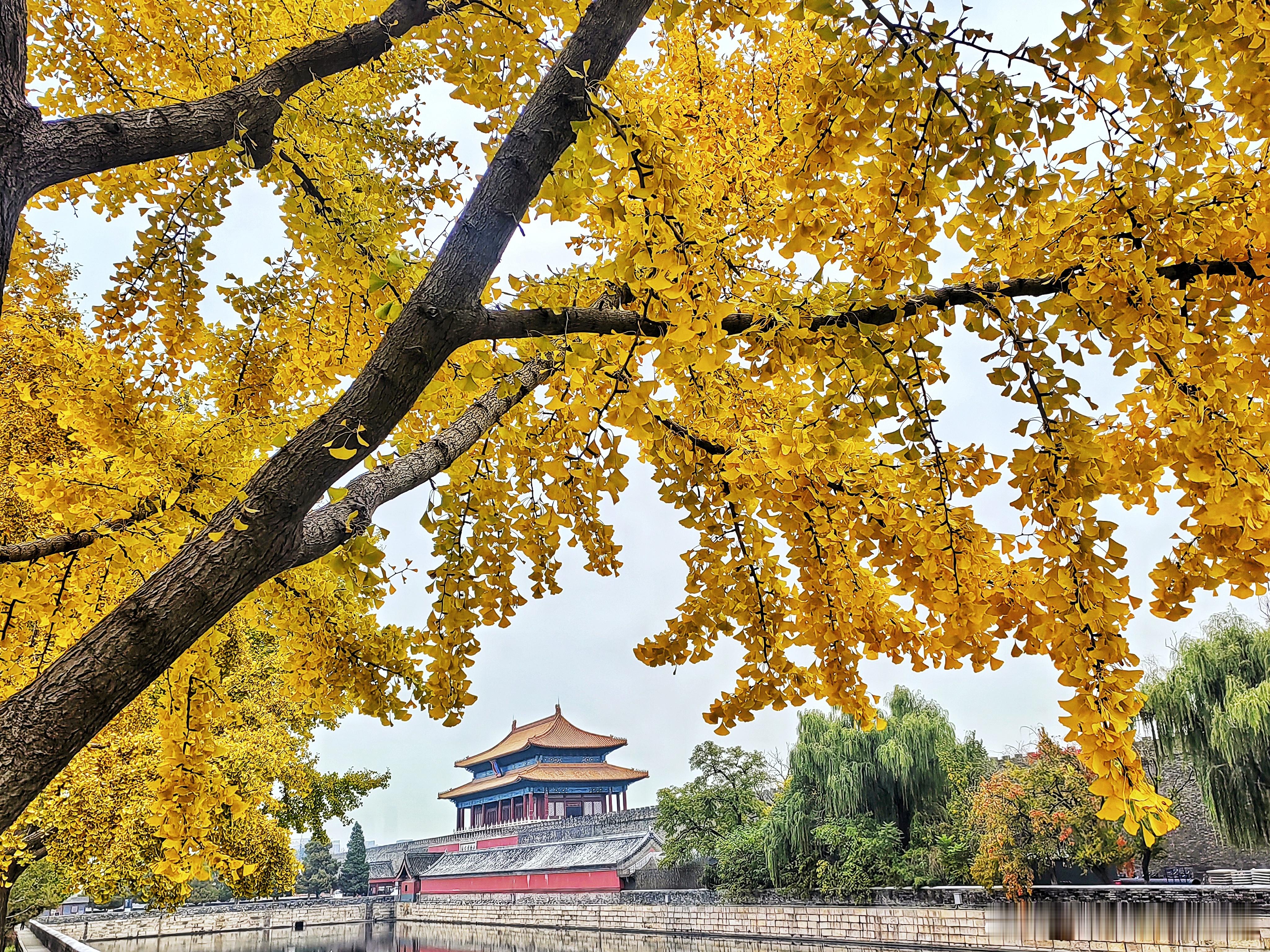 故宫西南角楼银杏渐入佳境,小伙伴儿们快来打卡吧!2025.10.31秋日北京漫游记