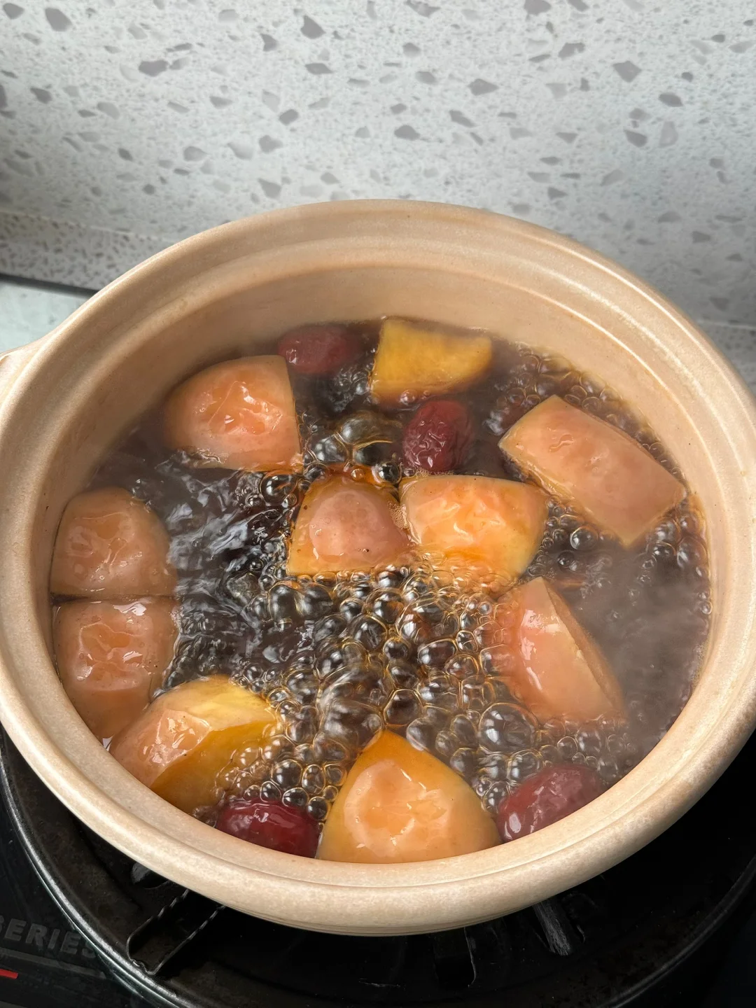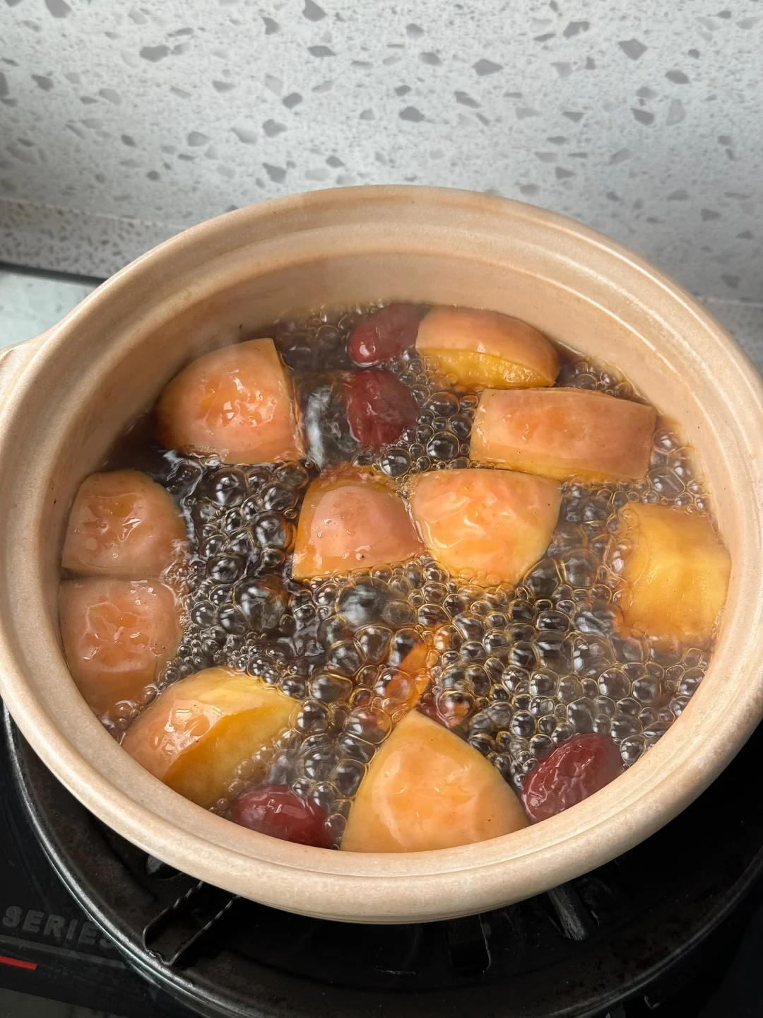 4. 大火煮沸转小火炖30分钟,不用加糖直接喝!