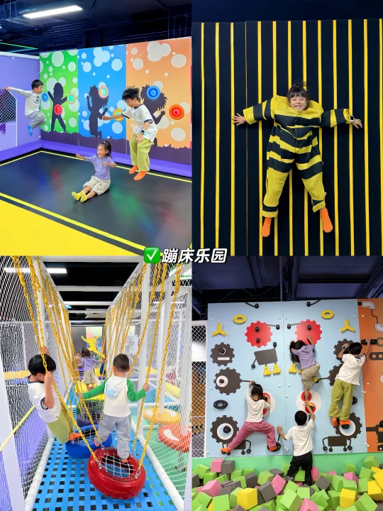 💃蹦床区:把孩子粘在墙上,太好玩了