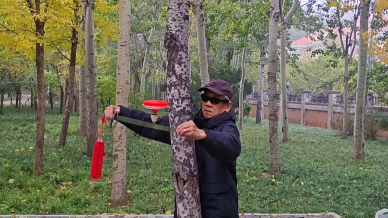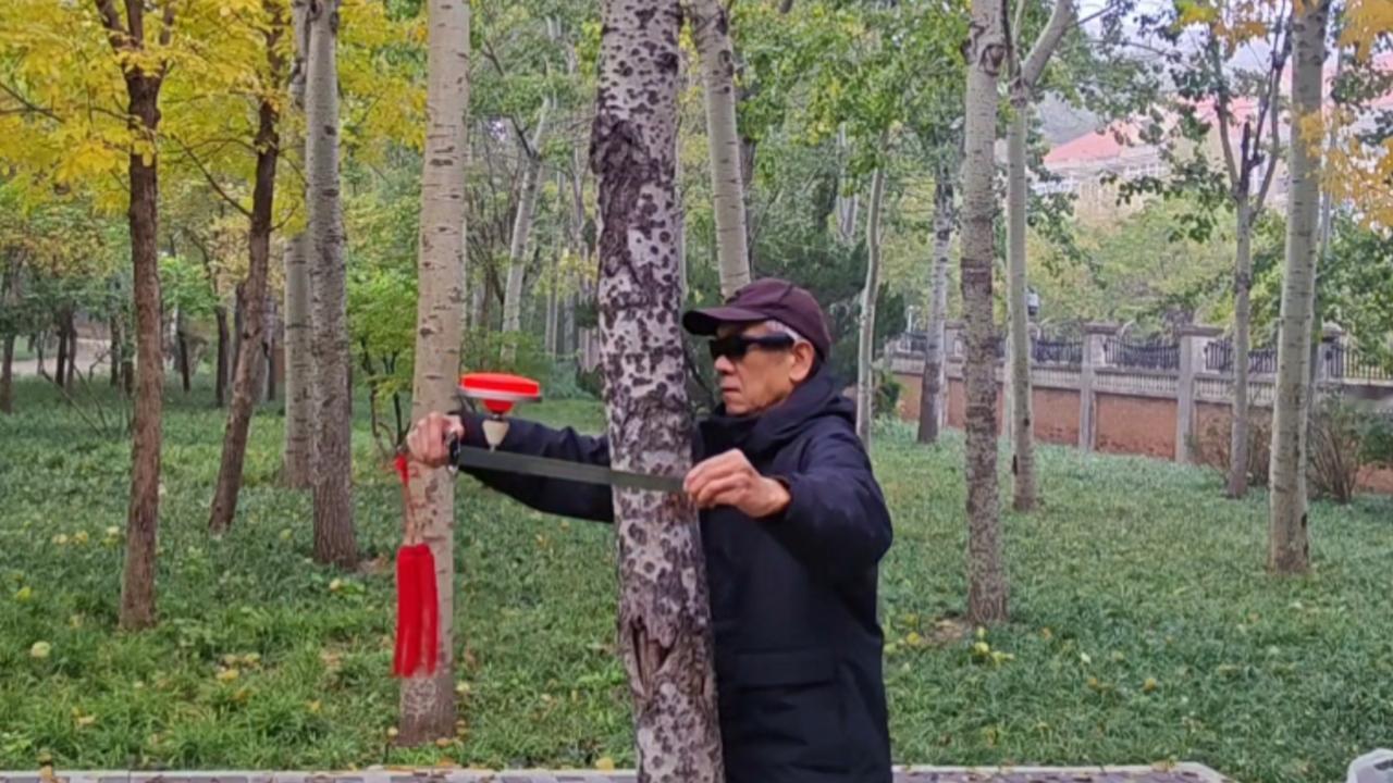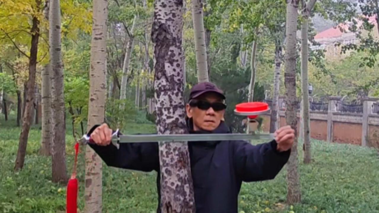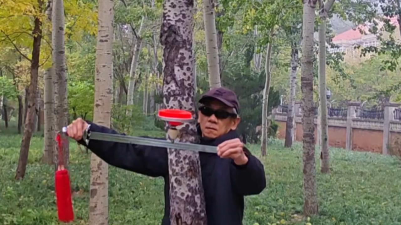 大爷晨练瞎捣鼓新玩法-剑刃推磨!