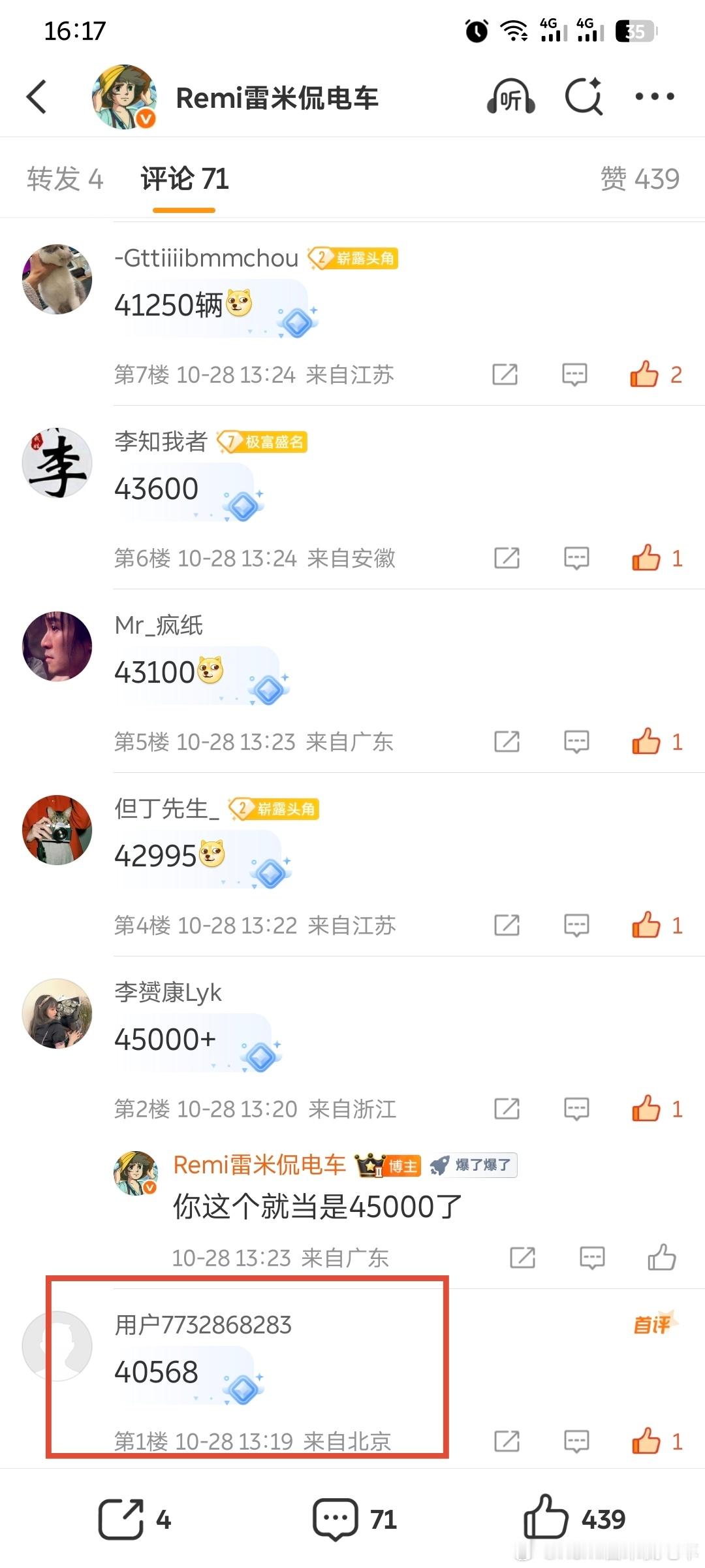 恭喜这位北京的朋友,猜的比例准确离十月交付数据40397最接近,待会加我好友获得2000积分[作揖]
