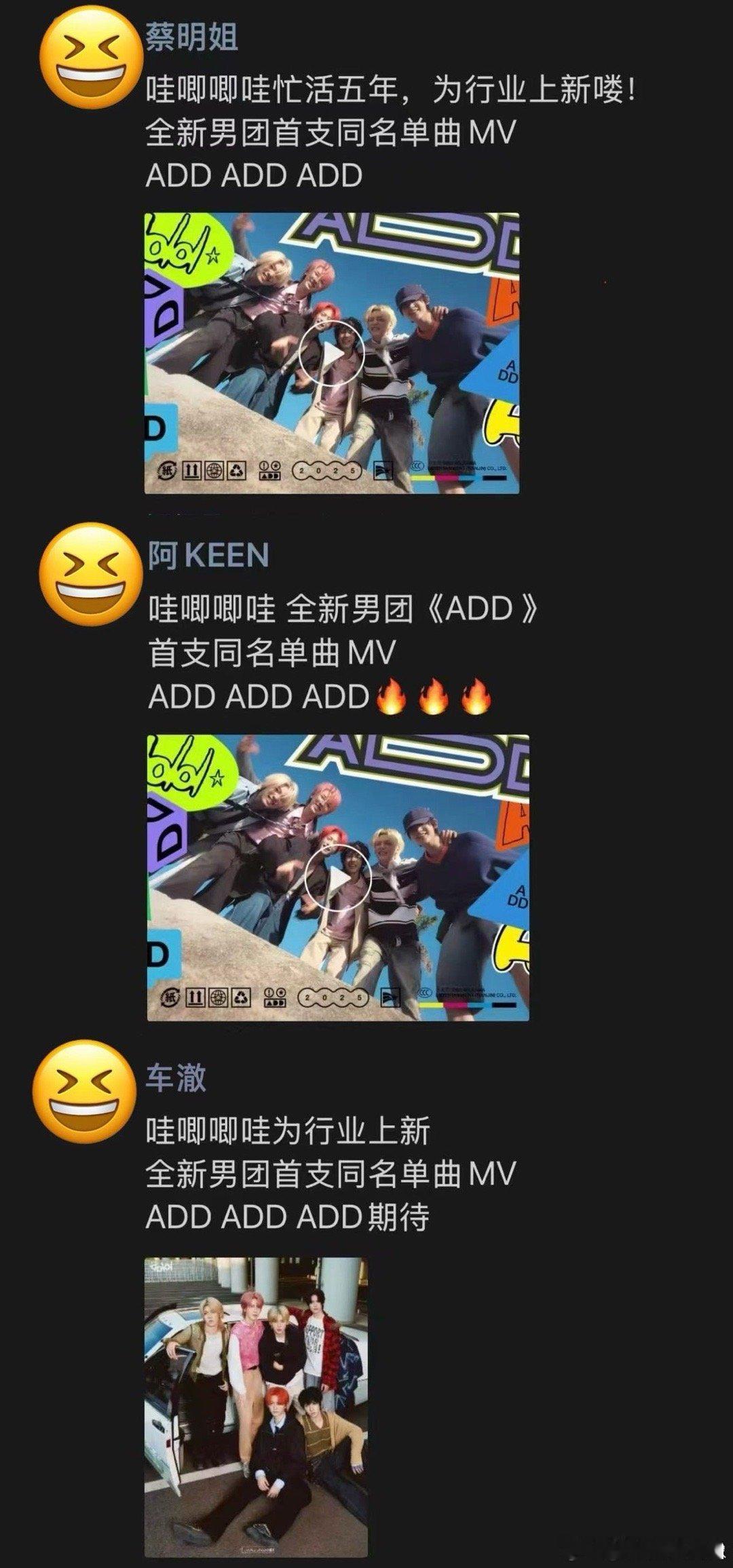 哇唧新男团出道摇来半个娱乐圈 哇唧新男团ADD出道太会搞事!首支MV《ADD》上线即收割半个娱乐圈祝福,蔡明、张颜齐、安崎等大咖纷纷打call。五年筹备+全明星宣传阵,排面拉满,这波能掀内娱唱跳新浪潮吗?
