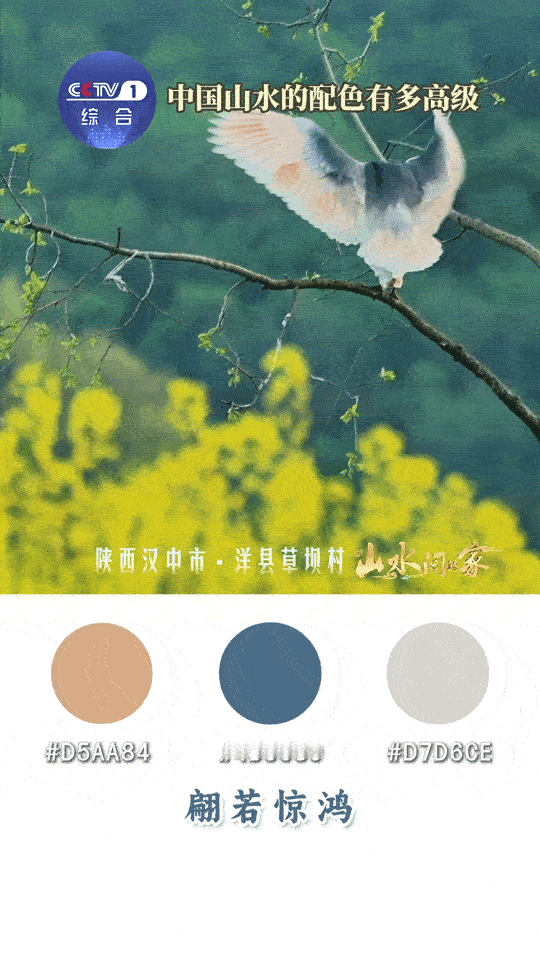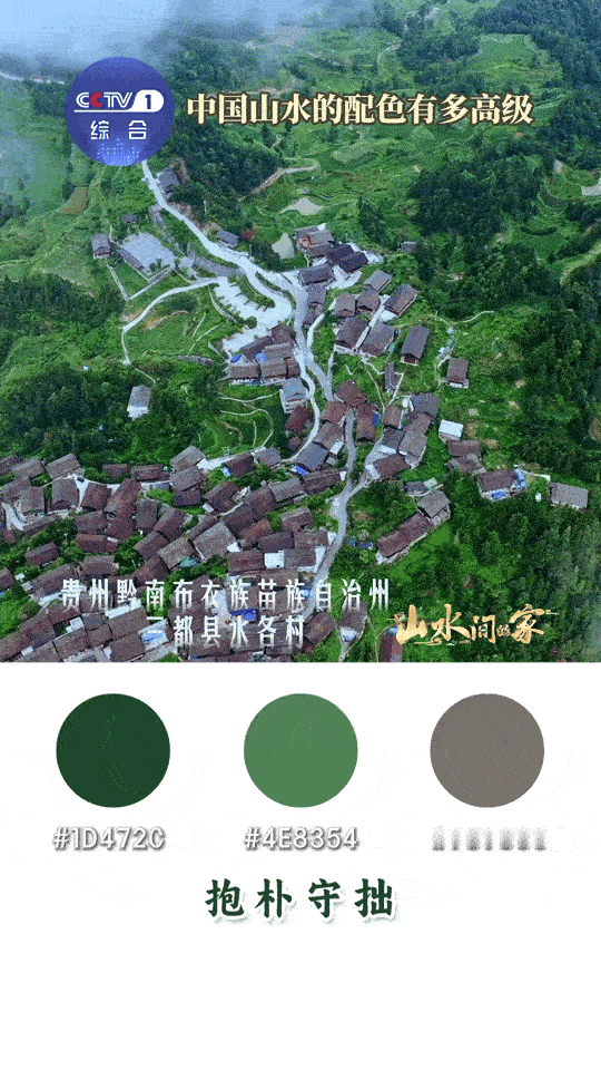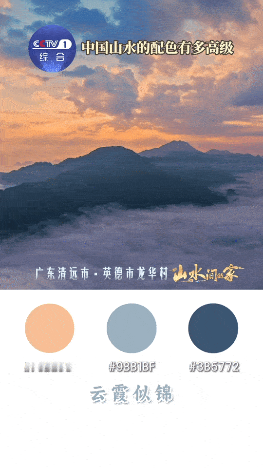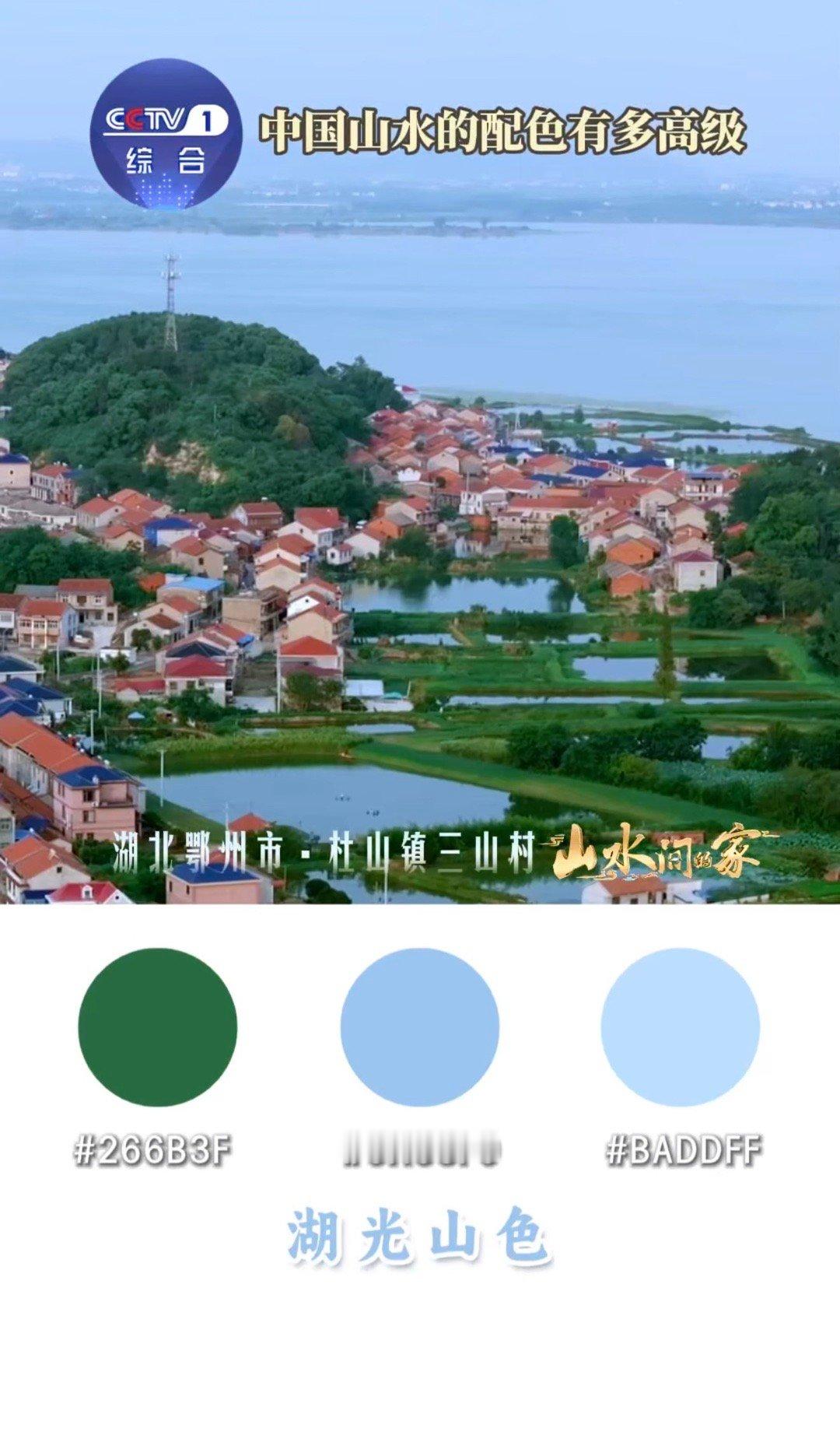 中国山水高级感配色 傍晚在河边看渔船,墨蓝的河面映着橙黄的渔火,岸边是浅绿的水草,这氛围感配色,学来搭针织衫超有质感!