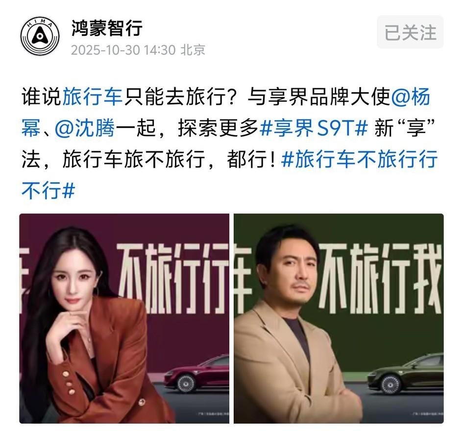 余承东团队真的是主打一个听劝啊,前不久博主“汽车界老妖”向余承东建议不要在享界S9T的宣传上把它局限在旅行车这个小众市场,要多宣传它是一款多功能家用轿车,没想到,仅仅35天过去,鸿蒙智行真的对享界S9T改变宣传口径和主题了,开始核心推广S9T在旅行车之外的多场景实用性。 9月25日的时候,博主“汽车界老妖”发布视频,大胆向余承东建议,叫他在宣传营销上打破S9T作为“旅行车”的功能局限。他说,我给华为和嘴哥一个建议,享界S9T这款车不要直接宣传成旅行车,而是要宣传成多功能家用轿车,这样它的受众面更广。 为什么呢?“汽车界老妖”分析说,因为有些人听到旅行车,就下意识认为自己没有什么旅行需求,365天只有5天是旅行的,他可能就不去看,不去了解了。但如果宣传为多功能家用轿车呢,就会让大家看到S9T的与众不同,比如它的颜值很吸引人,然后底盘可以升降,既可以做轿车,去旅行的时候也可以当成SUV用,就变成了一辆旅行版的轿车了,这样它的受众群体更加大。 不得不说,“汽车界老妖”的分析很有道理,华为鸿蒙智行的营销真的可以考虑请老妖去做个顾问。 我记得余承东在S9T上市前就特别制作过一条视频来“科普”什么叫“旅行车”,当时余承东说,它是轿车,但比轿车能装;它不是SUV,但有SUV的通过性。只可惜,享界品牌团队当时没有吃透余总所说的精神实质,只是将S9T作为一款单纯的旅行车推行市场,一直到10月中旬,享界品牌总监都还在不停的强调S9T是一款旅行车,非要把那么出圈的一款新车局限在一个小众赛道里面,就像去年的S9,非要宣传它是行政轿车一样。好在享界S9T终于爆发了,没有步S9的后尘,否则就真的白白浪费了它的颜值了。 其实我觉得吧,享界S9T就是一台多功能家庭轿车,满足各种家用和出行的需求。 让我没想到的是,余承东团队那么快就听进了博主“汽车界老妖”的建议,不仅在10月30日的宣传主题中强调“旅行车不旅行也行”,打破旅行车只能用于旅行的刻板印象,还邀请杨幂、沈腾作为享界品牌大使,通过他们的形象展示车辆在购物逛街、露营骑行、运动打球、带娃通勤等多场景的适用性。 “迷途知返”,享界团队终于让享界S9T回归余承东最初对其“比轿车能装、有SUV通过性”的产品定位,S9T终于让更多人看到了它的全能实力。这份“听劝后的精准发力”,不仅避开了去年S9的营销误区,更让它有了对标B BA 56E的底气。余承东 鸿蒙智行 享界 S9 北汽 华为进军汽车界 享界s9t 享界s9旅行款 享界汽车 北汽享界s9 享界s9