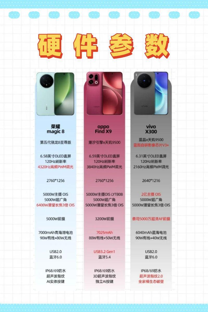 三款标准版旗舰深度体验,我最后选了它! 纠结了整整一周的OPPO Find X9、vivo X300和荣耀Magic8,可算尘埃落定了!😮‍💨 线下体验了好几轮,vivo X300的幸运彩真的惊艳,轻薄手感握起来特别舒服,后置拍照的色调很有高级感。OPPO Find X9的系统流畅度很棒,打游戏时的跟手性特别好,动画效果也很丝滑。 荣耀Magic8第一眼可能没那么抢眼,但用久了会发现它的屏幕看着特别舒服,长时间刷视频眼睛也不会累,而且7000mAh的电池真的让人很有安全感,出门再也不用电量焦虑了。 最后选择荣耀是因为我发现,平时使用中最在意的还是护眼和续航。虽然稍微有点分量,但换来一整天的安心使用还是很值得的! 颜值手感、极致性能、续航护眼,这三个选项你会优先哪个?荣耀Magic8 荣耀Magic8Pro