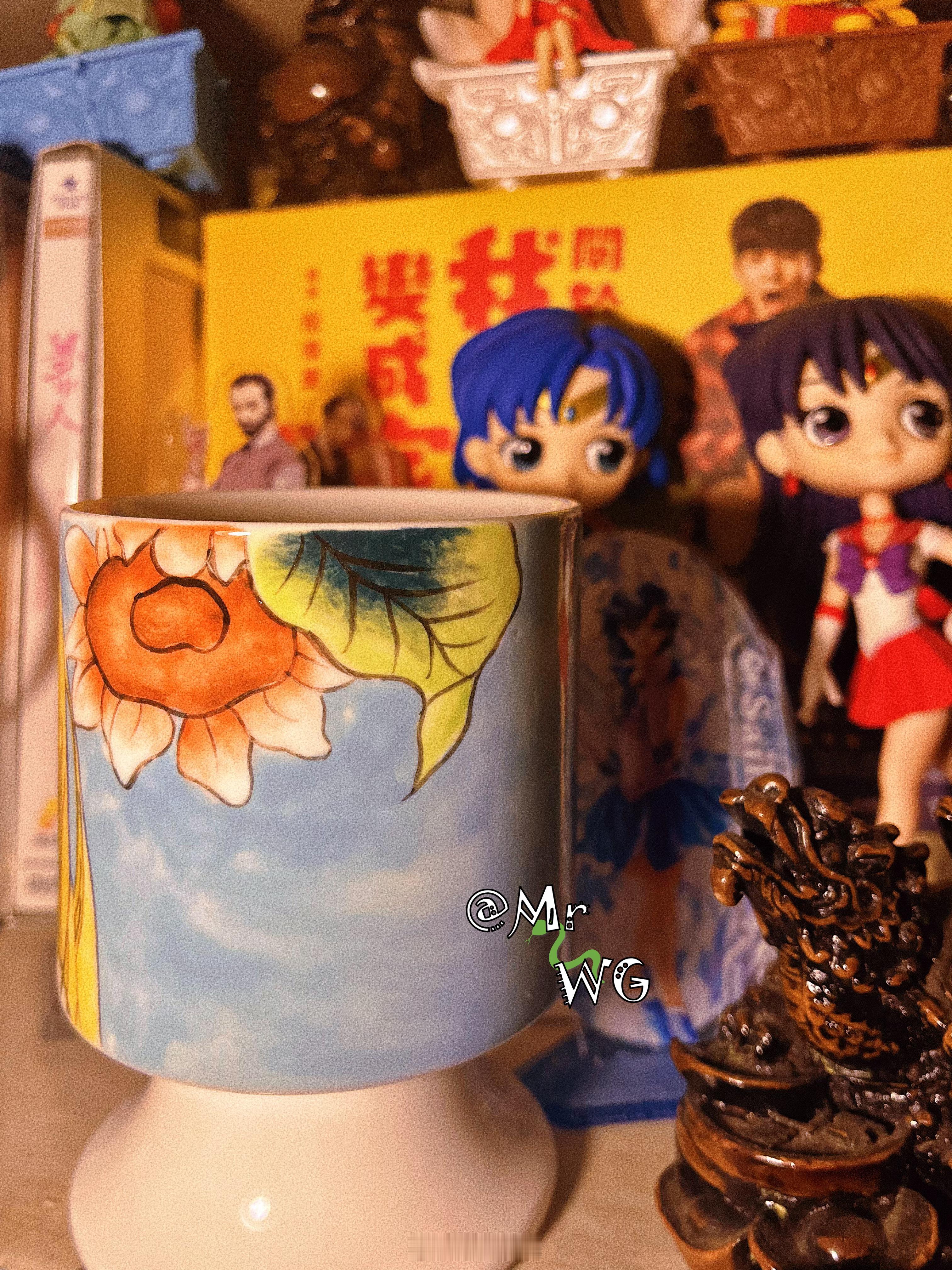 MrWG[超话]周边 “从此也不用分开相爱的天和地,还能在同一时空太阳月亮再相遇”——小胖外甥的妈逛景德镇,偶遇了Sailor Moon水手月亮🌙的手绘烧陶马克杯,还有向日葵🌻图案,就买了投送过来,心水🫶~还是倩妮迪公主造型。💖马克杯mrwg's plog