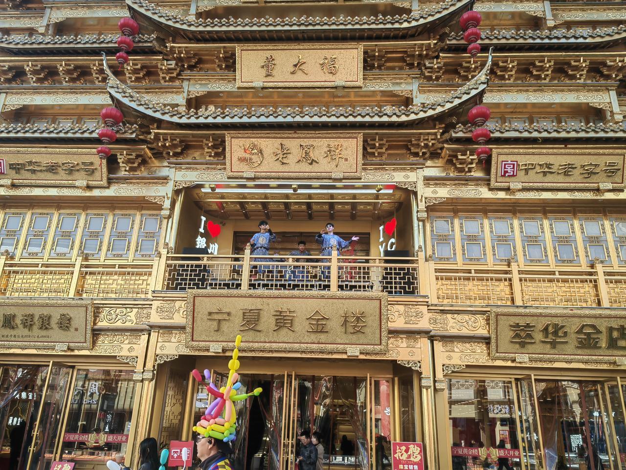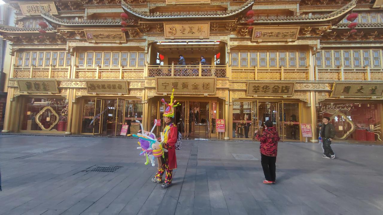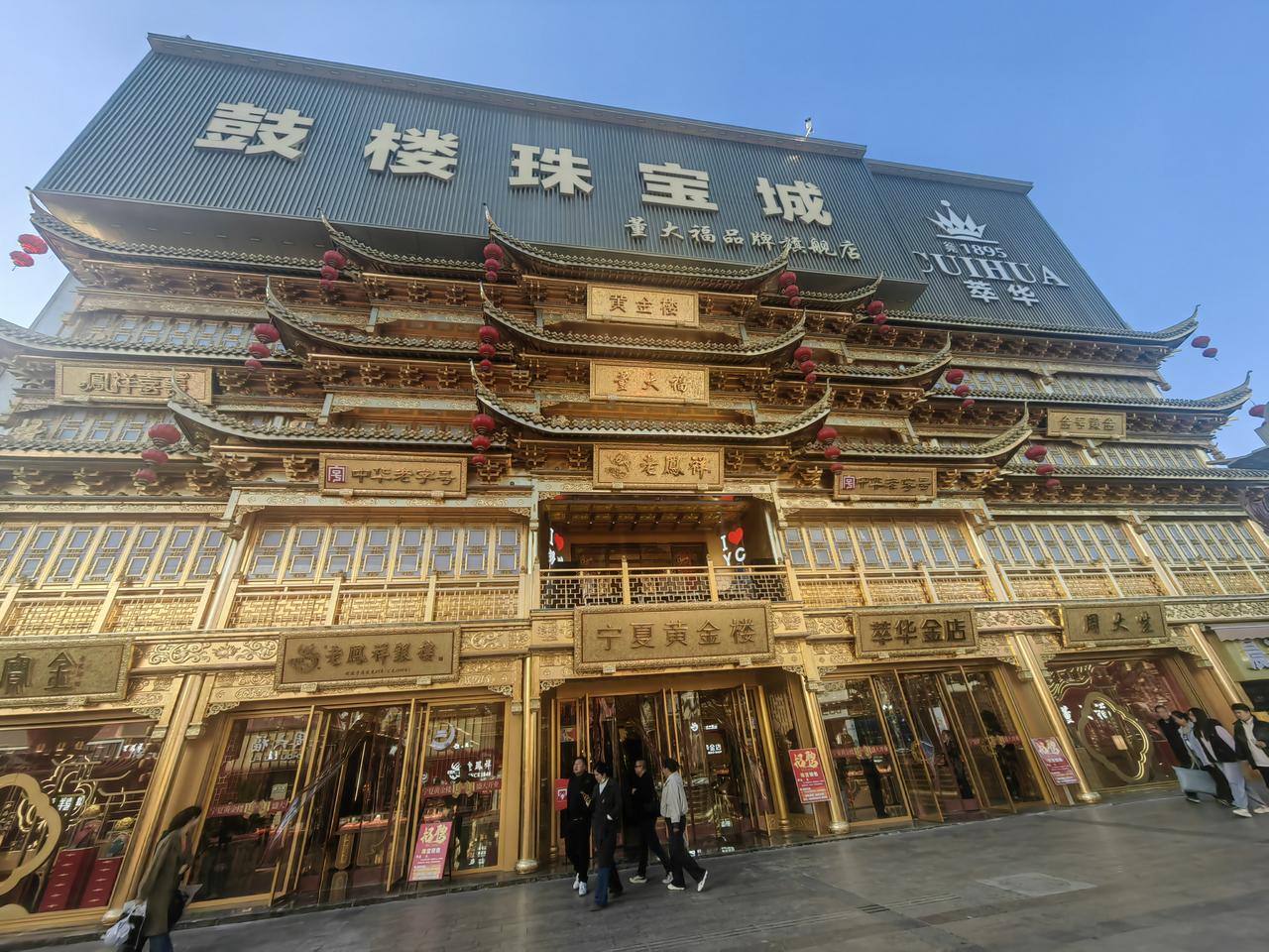 11月1日下午,周末时光,专程去银川鼓楼步行街打卡黄金楼。太阳照在鼓楼、钟楼上,它们遥相呼应,点缀城市楼宇大道之间,敦厚大气。古建筑得到保护,焕发生机,素朴典雅,飞檐走壁,雕龙画凤,那是穿越千年的历史回眸,仿佛让人望见了西夏年代的烽火岁月。 天气不算冷,阳光明媚,步行街人来人往,熙熙攘攘,小贩仿叫喊声不断,各大店铺打折让利,煞是热闹。装修一新的黄金楼,气宇轩昂,金碧辉煌。每隔一段时间,就有演员们在二楼表演节目,古色古香,动作飘逸,声音宏亮。过往的行人立刻被这景象吸引了,站在那里拍摄照相,还有人随着音乐跳起舞来,具有极强的代入感。 黄金楼夜景 宁夏鼓楼 黄金步行街 银川黄金城