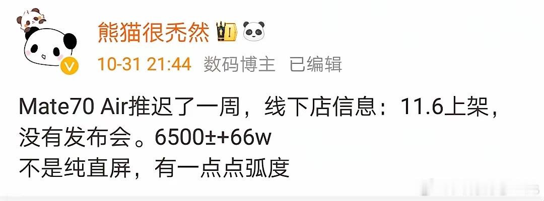 华为Mate 70 Air据说是延期了,延期一周!