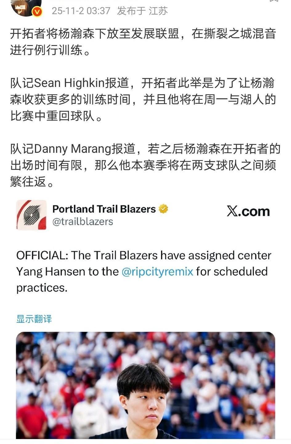完犊子了,开拓者宣布将杨瀚森下放到发展联盟球队进行训练和比赛…… 前两天徐静雨老师的话有多准:杨瀚森已彻底边缘化,下一场就可能被下放发展联盟了。 当初选杨瀚森,并不是开拓者有多需要杨瀚森,只是这位中国球员身上存在重要的商业价值而已,其它的都是……