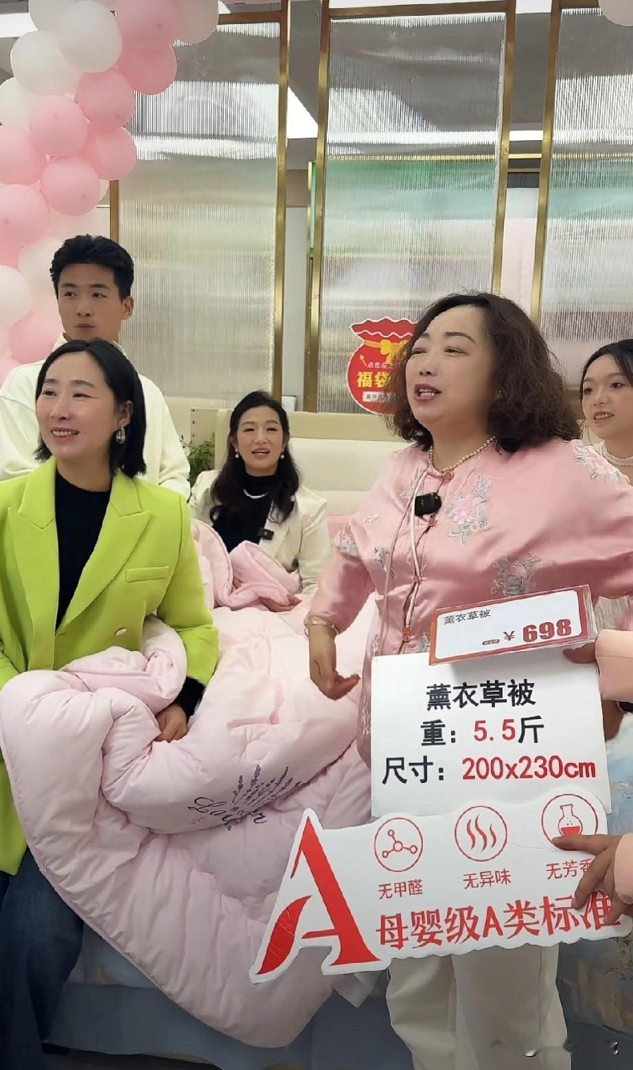 没想到谢浩男妈妈开播带货这么多场了,直播间还能达到1万人观看, 今天卖的是家纺,因为变天了,大家都应该换被子了, 也马上到双11了, 谢浩男妈妈提前给大家直播, 还别说直播间的这双被子挺便宜的,原价698元,双人被子,200×230 直播间只卖79元, 就是不知道质量怎么样?[捂脸]