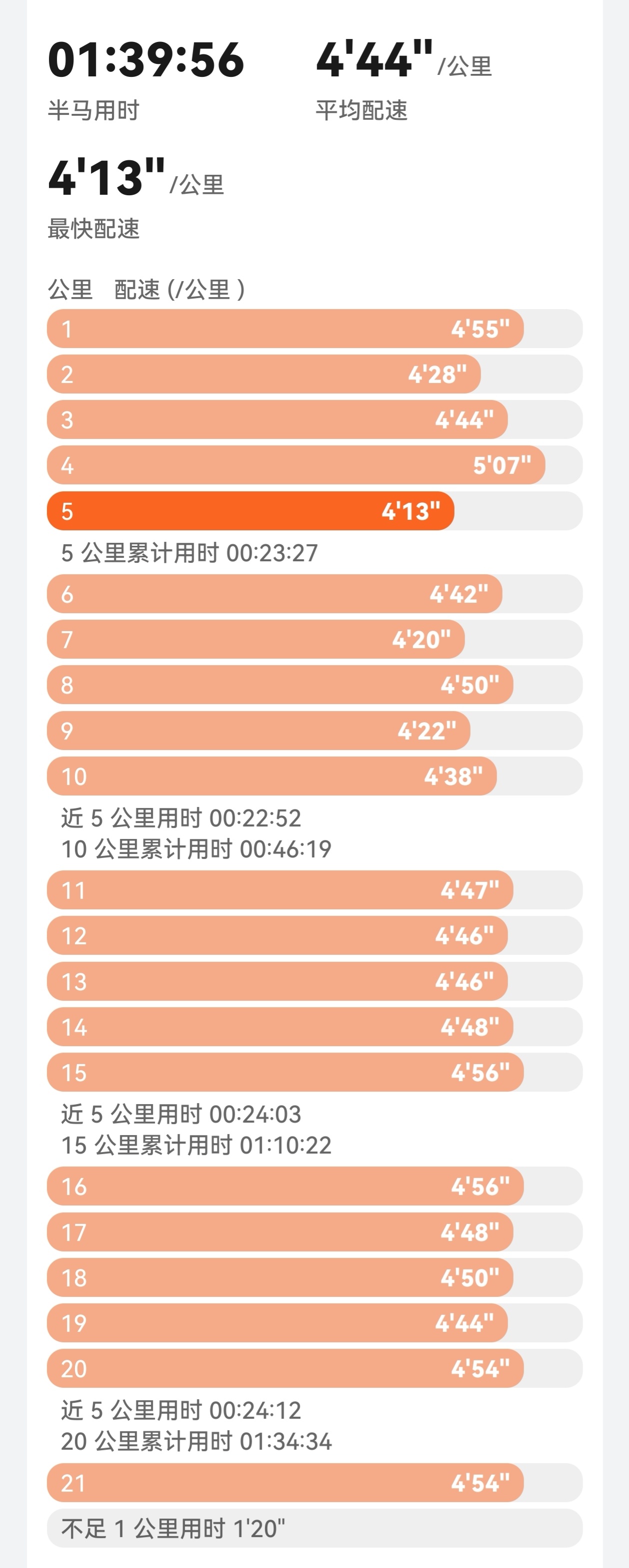 重庆长嘉汇半程马拉松顺利完赛!跑量太少,10公里以上的长距离一次都没跑,最大摄氧量比高峰时低了10%,心率一直持续高位。