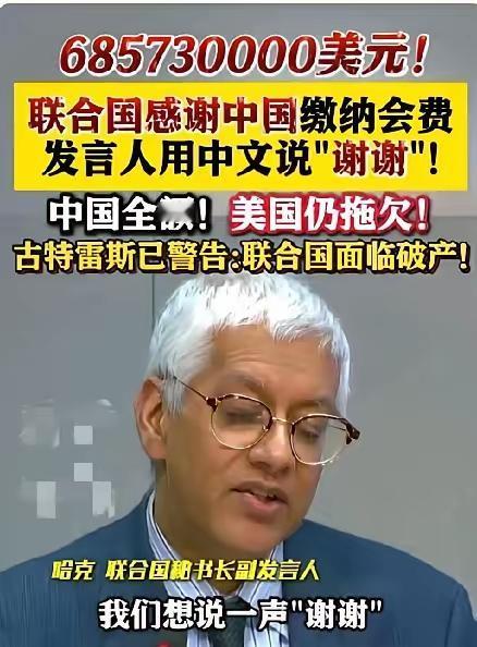 中国又按时把6亿8573万美元联合国会费交了。 可能大家不知道,如果我国不交,联合国都要倒闭了。 联合国如今欠费高达7.6亿美元,美国更是常年当“老赖”欠缴。有人觉得中国交这么多钱,就换来一句谢谢,太不划算了。 但咱得明白,这可不是简单的“吃亏”。按时缴费,是守住多边主义阵地,在全球治理中争取更多话语权。美国靠霸权欠缴还享特权,而中国坚守规则,恰恰反衬出霸权的无理。中国用行动证明,是联合国值得信赖的伙伴。 大国担当不是靠嘴说,而是体现在行动上。按时缴纳会费,比一时的“站队”更有长远价值。那你觉得中国按时缴纳联合国会费,是必要的坚守还是没必要的妥协呢?快来评论区说说你的看法!