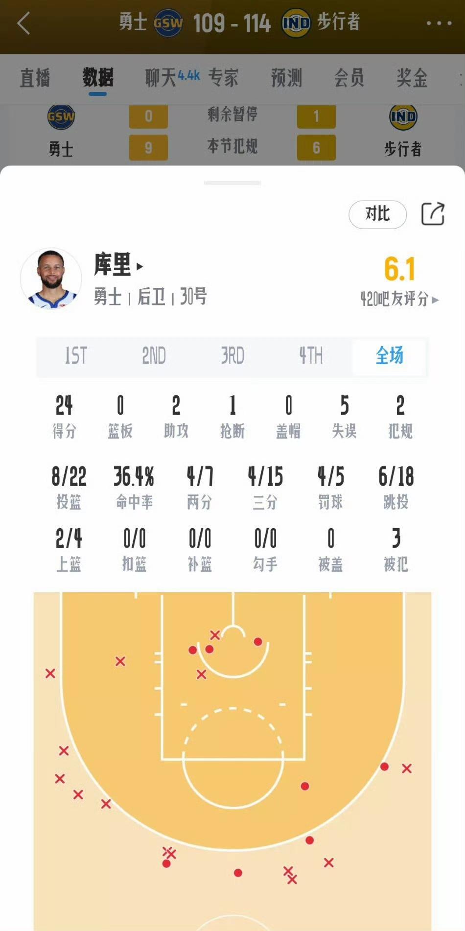 你想成为NBA巨星吗?你想拿到NBA大合同吗?你想赢球吗?你想捏软柿子吗?请与勇士队比赛…… 开季5连败的步行者被完整阵容的勇士开光,终结连败得好好感谢勇士哥。 第四节剩下不到6分钟,勇士104-93领先步行者11分,看起来勇士要收割比赛。 然而后面究竟发生了什么?勇士109-114不敌步行者…… 三分之神今天正负值-21,全队最低,三分球15投4中。累了就轮休,对方10天短合同打你一个多亿的阵容。