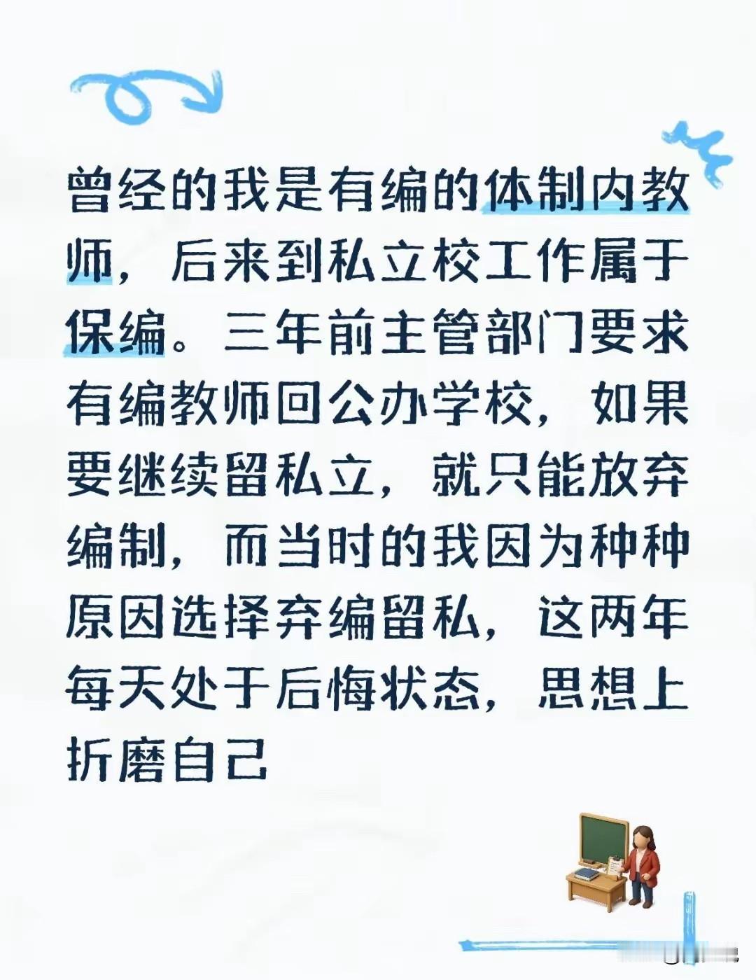 如果是这事情属实的话,周少觉得这就是典型的人心不足蛇吞象,身在福中不知福,既想要高薪资,又想要编制。现在放弃编制留在私立学校,又觉得后悔。早知如此,何必当初呢?#寻美三湘# #长沙新朋友#