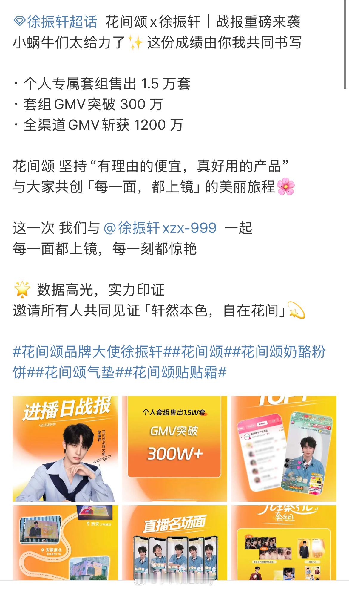 徐振轩新商务出的战报GMV1200万,粉丝购买力很强