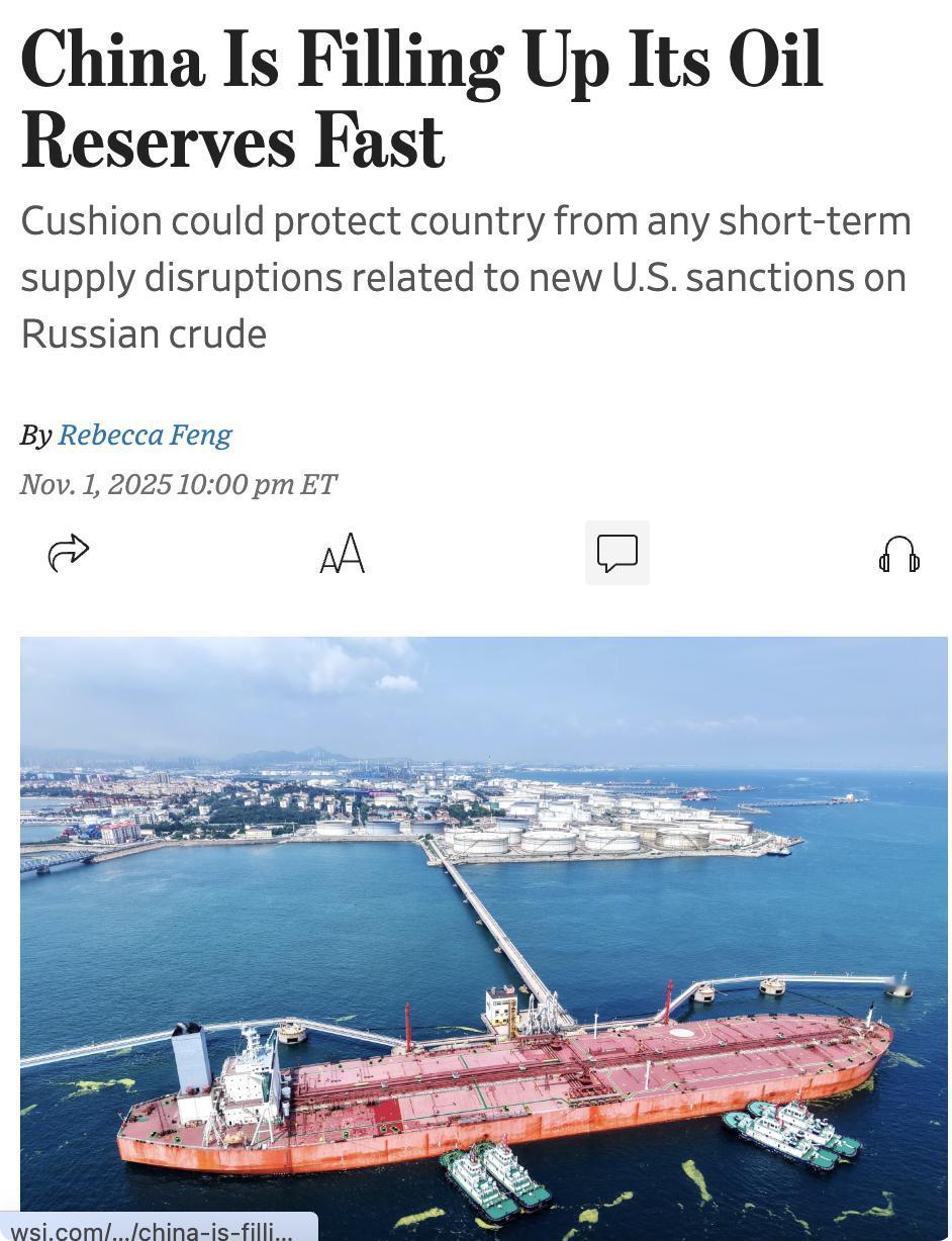 美媒:中国正在快速增加其石油储备。在2025年美国对俄罗斯原油实施新制裁的背景下,这一举措显得尤为重要。 中国作为世界第二大经济体和最大的原油进口国,其石油储备的增加有助于缓解任何可能因美国制裁导致的短期供应中断风险。 在2025年前三季度,中国平均每天进口超过1100万桶原油,其中约100万到120万桶被储存到战略储备中。低油价以及对乌克兰袭击俄罗斯生产设施的担忧是推动中国加速购买石油的原因。