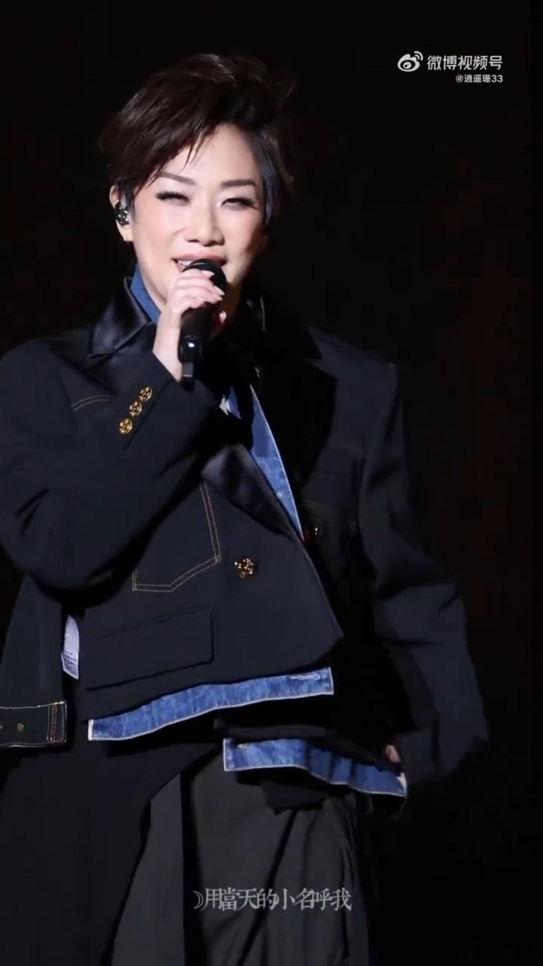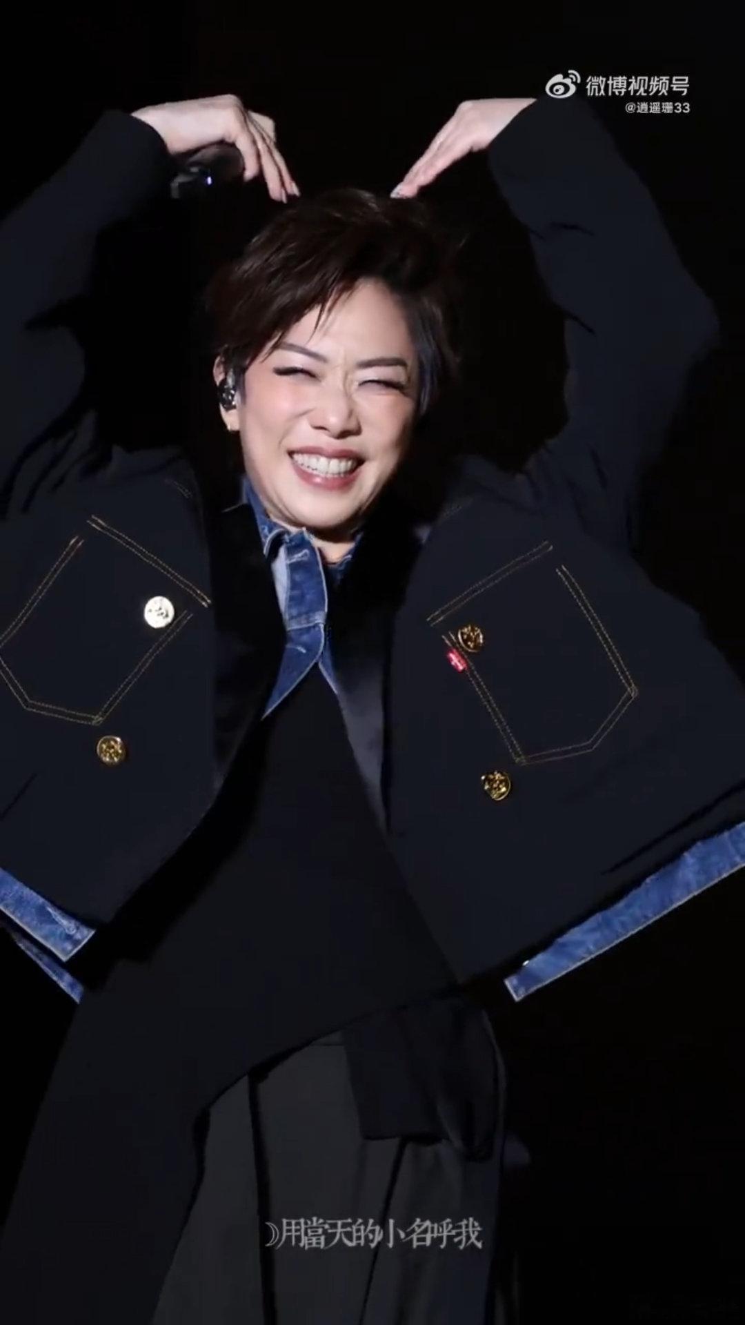 林忆莲舞台上的可爱动作 林忆莲的舞台表现力不用多说,实力在线,可她那些突如其来的小互动,托脸、眨眼、挥手,都让我觉得她离观众很近,像在和老朋友聊天一样。