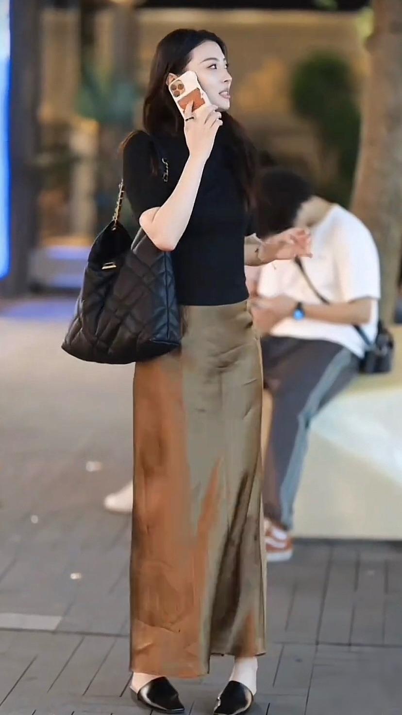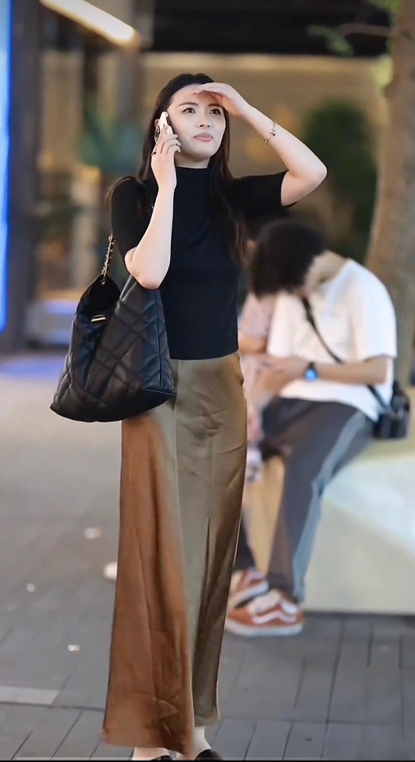 都市夜色下的优雅穿搭,黑色上衣搭配棕色长裙,时尚又舒适,气质满满………