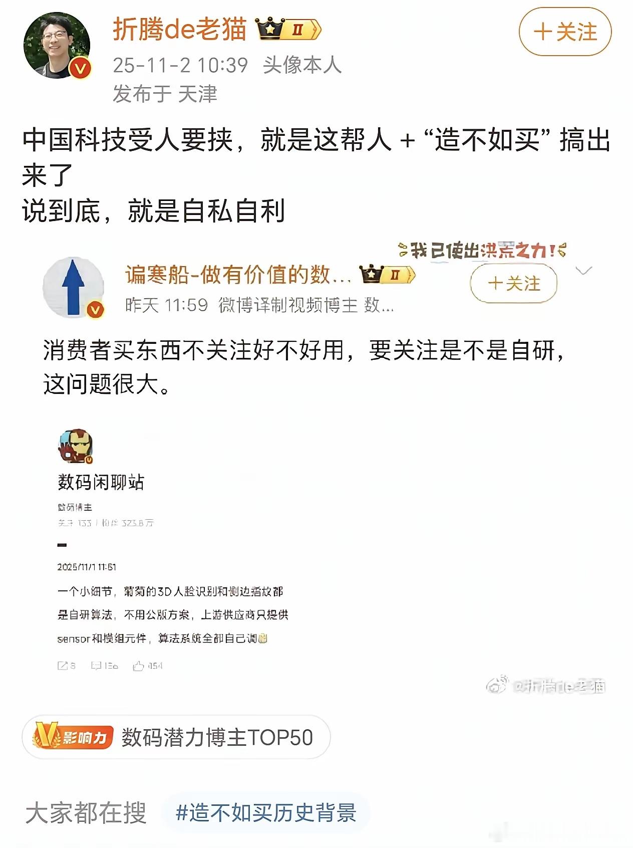 科技平权这件事一定是只有自己掌握了才能说,如果是依赖别人的技术,然后还喊着科技平权,就很可笑了。