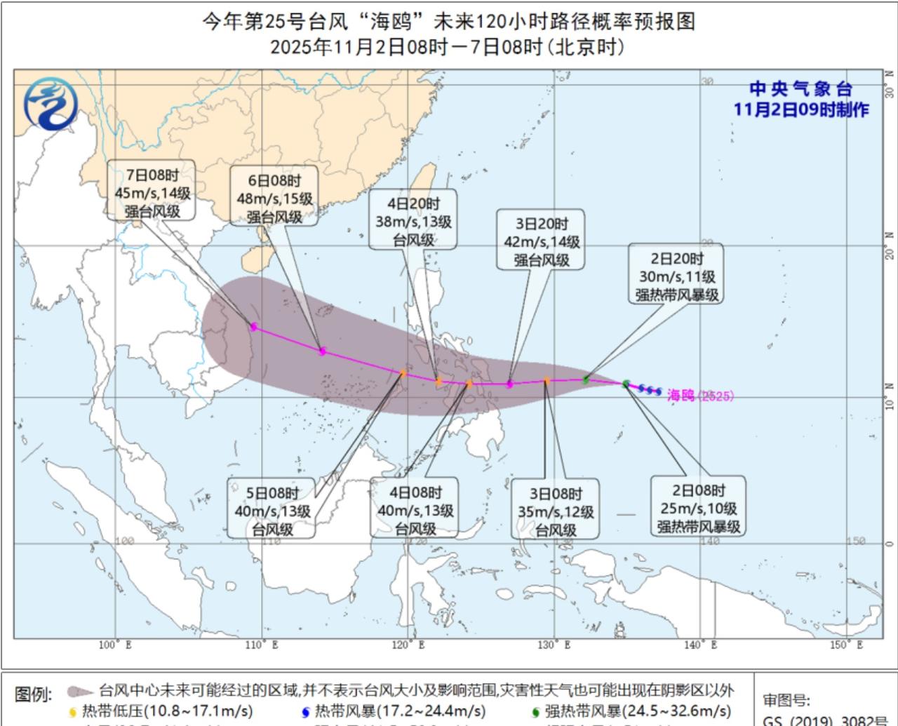 今年第25号台风海鸥已在昨晚于雅浦岛近海生成。未来将向偏西转西北偏西方向移动,穿过菲律宾中部群岛后进入南海,随后趋向越南中部沿海。 除对中沙、南沙的直接影响和海南、台湾岛东部部分东北风强阵雨外,海鸥对我国的影响很有限;而它的到来可能加剧越南中部强降雨的灾害。 在无尽长夏之海,遥望深肃于秋的灯火。
