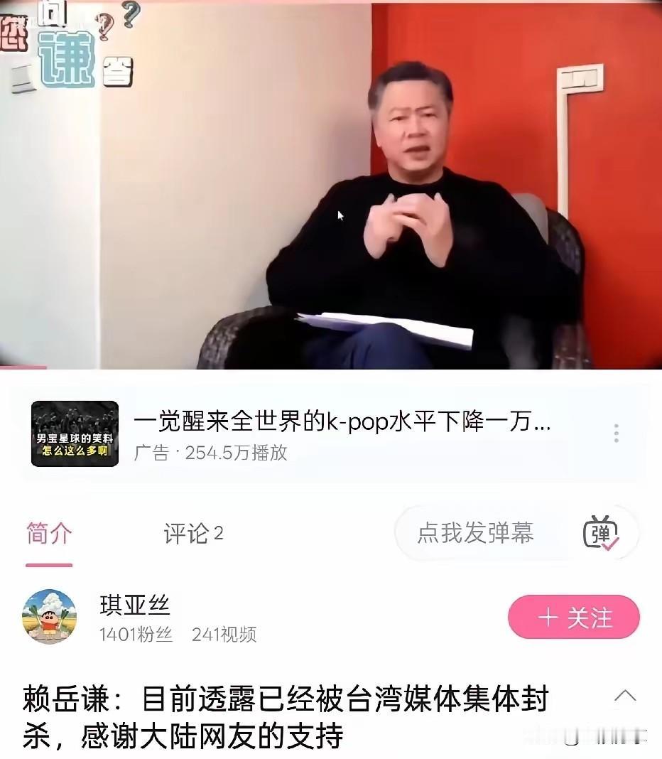 台湾名嘴赖岳谦被台湾省的媒体集体封杀了,感谢大陆网友支持。 对于被各大媒体封杀,赖岳谦表示能够理解。 赖岳谦是比较亲大陆的,经常会到大陆来旅游,在节目里也都是帮大陆说话的。 台湾现在的大环境,像是赖岳谦这样的名嘴真的不多了,因为这个大环境容不下这些说真话的人。 封杀一个说真话的人,堵不住万千民众的眼睛和耳朵。赖岳谦在节目里从没拿过“极端话术”博眼球,只是把大陆的发展实况、两岸同胞的血脉亲情娓娓道来——他会聊大陆高铁的准点率,会说故宫文物背后的共同历史,会劝岛内年轻人别被“仇陆”宣传误导,去大陆看看真实的发展机会。可这些平实的话语,在民进党当局操控的舆论场里,竟成了“原罪”。 谁都清楚,这场封杀根本不是“媒体自主选择”,而是岛内“绿色恐怖”的又一次露骨表演。民进党上台后,一边用行政力量胁迫媒体站队,一边拿钱扶持“台独”倾向的节目和名嘴,那些睁眼说瞎话、抹黑大陆的言论能畅通无阻,而客观理性讨论两岸关系的声音,要么被剪得支离破碎,要么直接被下架封杀。去年台媒人黄智贤因为坚定反对“台独”,节目遭停播、社交账号被限流;如今赖岳谦步其后尘,本质上都是“顺独者昌,逆独者亡”的霸权逻辑在作祟。 赖岳谦的遭遇,让很多台湾同胞看清了一个残酷现实:所谓的“言论自由”,在岛内早已成了笑话。你可以骂执政者施政无能,却不能质疑“台独”的荒谬;你可以抱怨民生艰难,却不能说统一的好处。有岛内网友吐槽,现在打开电视,要么是“台独”名嘴们互相吹捧,要么是编造大陆的虚假新闻,想找个能客观聊两岸的节目,比登天还难。这种舆论封闭,正在把台湾推向越来越窄的死胡同。 大陆网友的力挺,恰恰印证了“公道自在人心”。赖岳谦的短视频账号下,满是“支持赖老师说真话”“欢迎常来大陆”的留言,有网友甚至整理了他的节目合集分享,让更多人看到理性的声音。这种跨越海峡的支持,不是因为他“帮大陆说话”,而是因为大家珍惜这份敢于冲破偏见、坚守真相的勇气,珍惜两岸同胞之间本应有的真诚沟通。 历史从来不会因为谎言而改变走向。民进党当局以为封杀几个名嘴,就能让台湾民众忘记自己是中国人,就能割裂两岸的历史与文化,简直是异想天开。赖岳谦被封杀后,更多人开始反思岛内舆论的畸形,越来越多的台湾年轻人通过社交平台主动了解大陆,他们看清了“台独”分子的谎言,也读懂了统一的必然。 真正的民意,从来不是靠封杀就能压制的。赖岳谦的遭遇,反而成了一面镜子,照出了“台独”势力的色厉内荏,也照出了两岸同胞渴望沟通、期盼统一的心声。那些试图堵住真相的人终会发现,两岸同胞的血脉联系,岂是几道封杀令就能切断的?而说真话的人,永远会被历史和人民铭记。