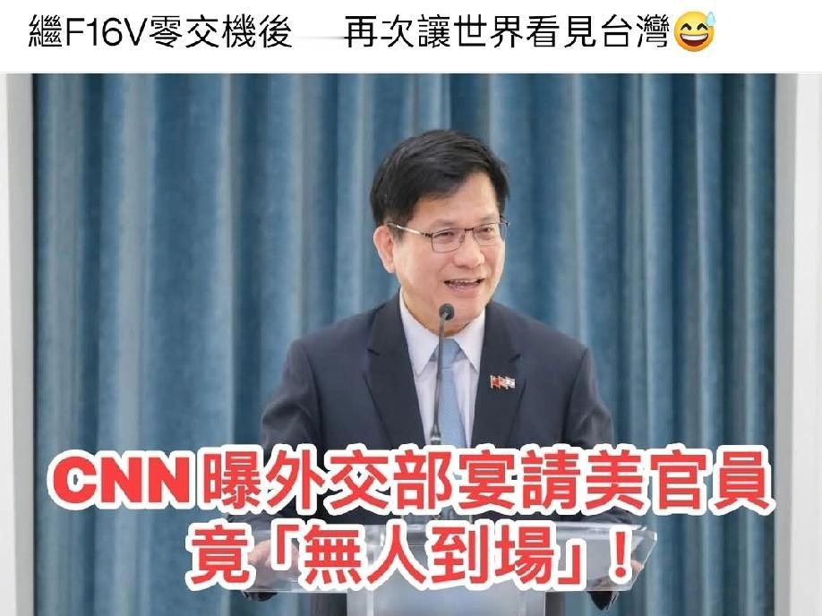 1500亿人民币买的66台玩具飞机,在卖家搞个出厂典礼之后就全部隐形,一台都看不到。 现在又被CNN报出来,请人吃饭来的全是隐形人,CNN直接用了"无人到场"四个大字。 请吃饭,居然一个人都看不到 林佳龙算是把“隐形”外交做到极致了