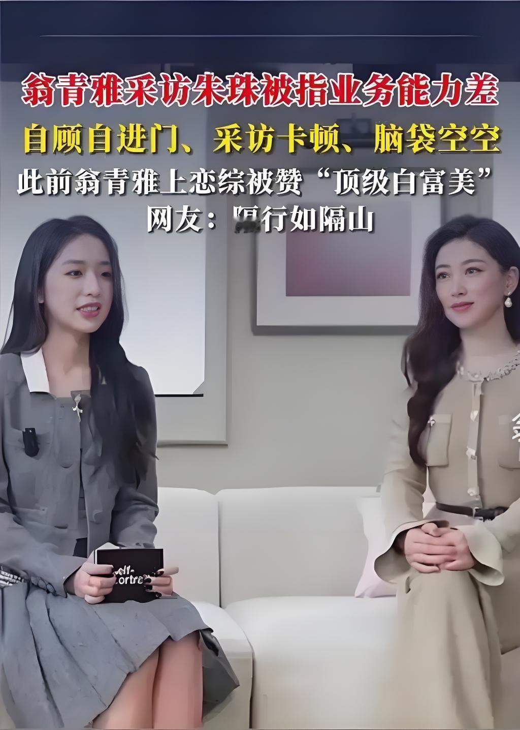 2025年11月1日,《心动的信号7》女嘉宾翁青雅跨界主持采访朱珠时表现失误,自