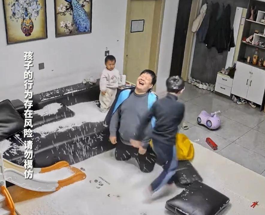 河南有爸爸在家里带两个孩子。 这日爸爸带俩孩子在家看电视,其中一个孩子突然犯起了调皮的毛病,不知道是不是自己情绪感到了兴奋,站在家里懒人沙发高处,后往懒人沙发垫子上一跳,这一跳不要紧,明显沙发垫子没有抗衡住孩子的力量爆了。 当即沙发垫子内的填充物开始在房屋客厅里如雪花飘荡,此刻爸爸却没有生气,哪怕沙发的价格昂贵,爸爸选择了和孩子们在客厅里一起嬉闹起来,看样子把爸爸心里的童年也诱惑出来,要不是妈妈出来生气,爸爸还不知道与孩子们要玩多久,妈妈的警告让爸爸随后只好来收拾了。 这里看到一名爸爸的心态,他以自己的行为而改变家里孩子的个性,如想爸爸发火,孩子们肯定会哭而没有现在的欢笑,爸爸以自己的想法带给孩子们的一次欢乐。 这里看到父母的情绪其实就是孩子们的情绪,爸爸以自己的心态改变了此刻要发生的情绪变化,孩子们感受不是爸爸的脾气而是爸爸带来的欢笑,这一刻孩子们是高兴的。 这里看到爸爸处理孩子犯错的方式,毕竟沙发坏了,还可以再换或修一修还能用,但如果此时爸爸发火惩罚孩子,那孩子在这个家里一定会小心翼翼,反而不利于孩子的成长,这名爸爸是聪明的。
