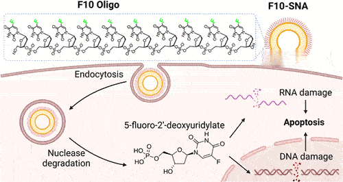 研究团队采用由米尔金在西北大学最早发明的SNA结构——一种具有纳米核心、外层包覆致密DNA或RNA链的球形结构。此前研究发现,细胞会主动识别并摄取SNA结构。此次,他们在DNA链中直接嵌入化疗药物,使其成为药物与基因材料结合的新型纳米体系。