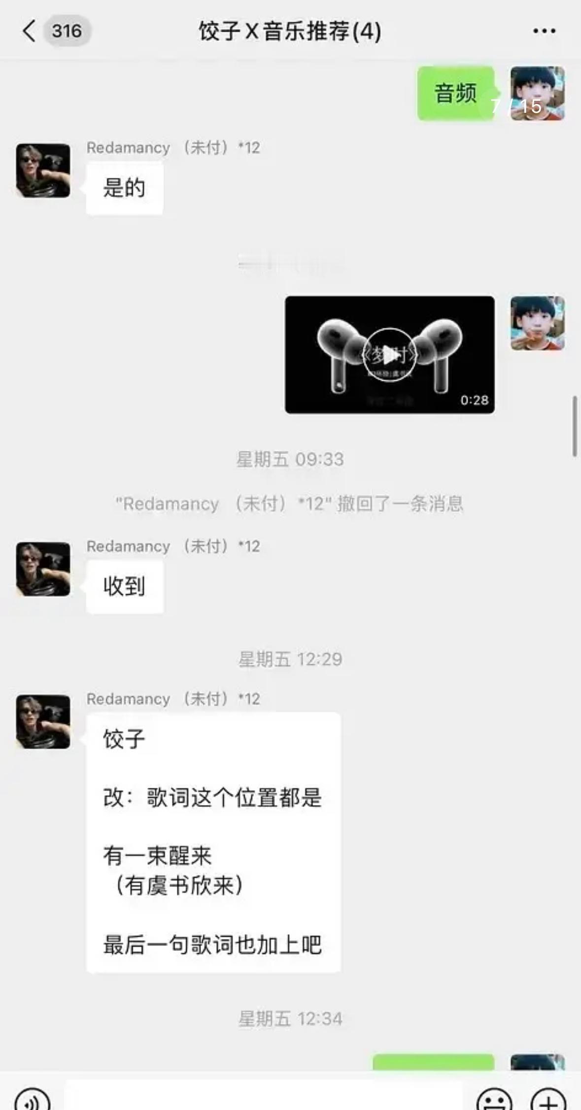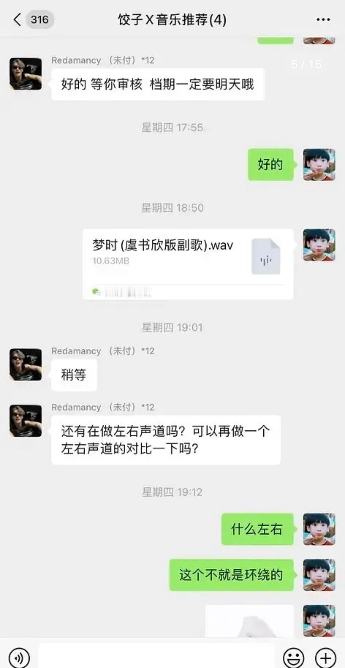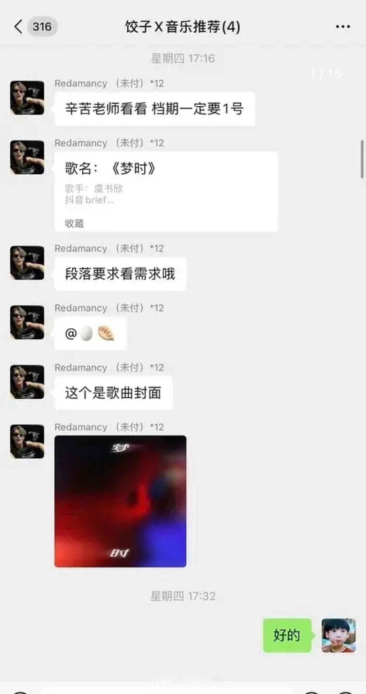 从备注未付12条能看出这个大概率是音乐平台或者音乐公司的合作,所以我觉得虞书欣团队和本人不能背锅。