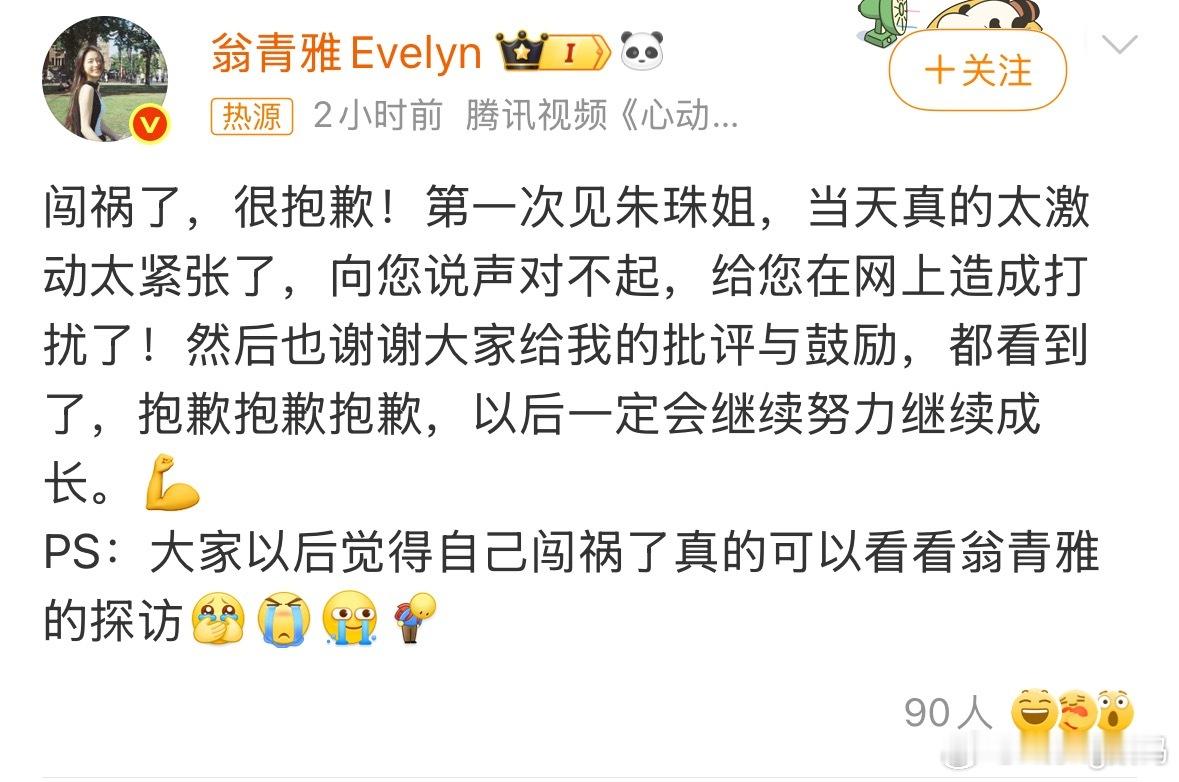 翁青雅道歉真的很尴尬从头闯到尾的祸也是第一次见作为路人都想拉黑的程度[流汗][流