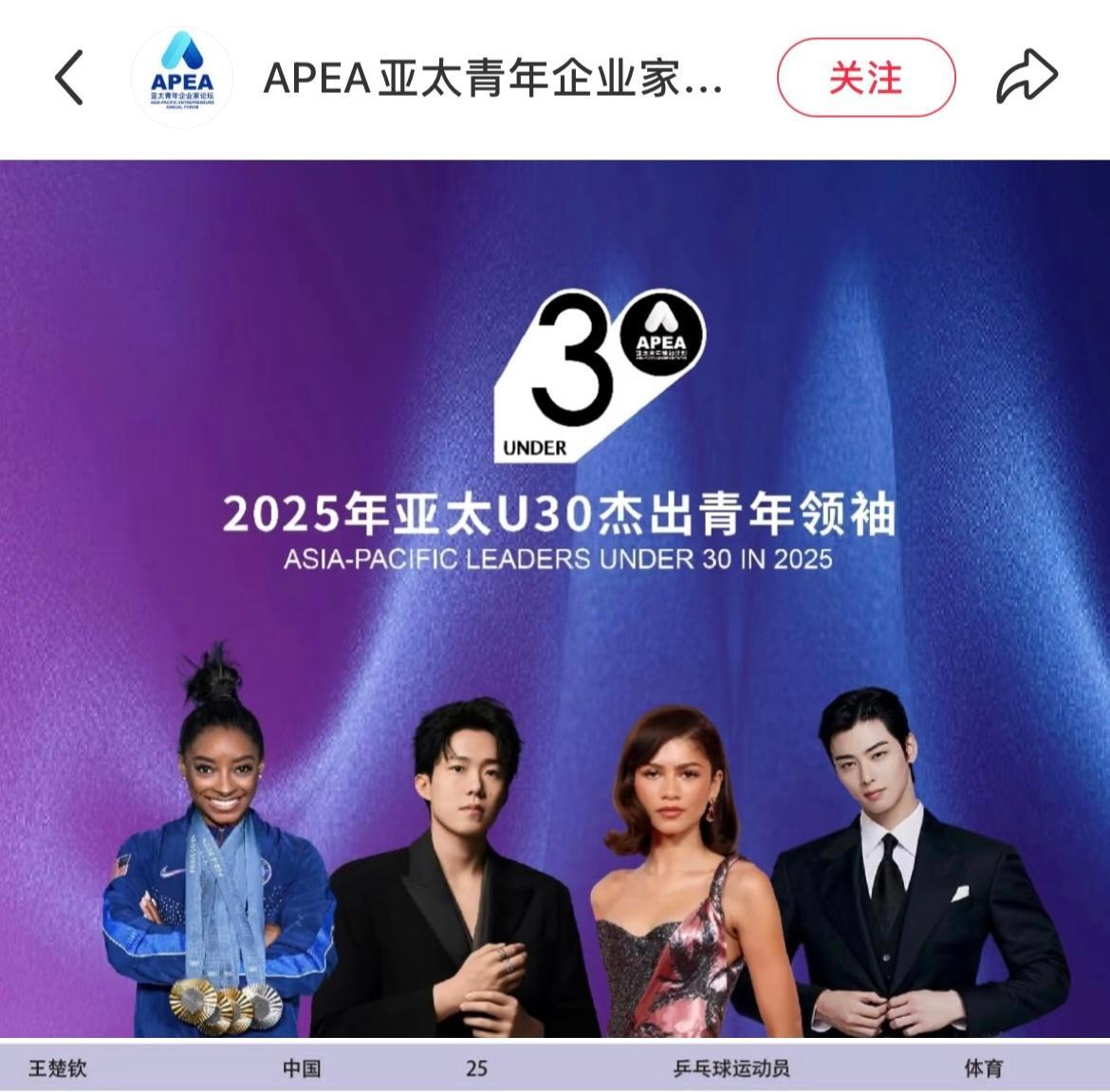 2025亚太U30杰出青年领袖 恭喜王楚钦👏🏻👏🏻