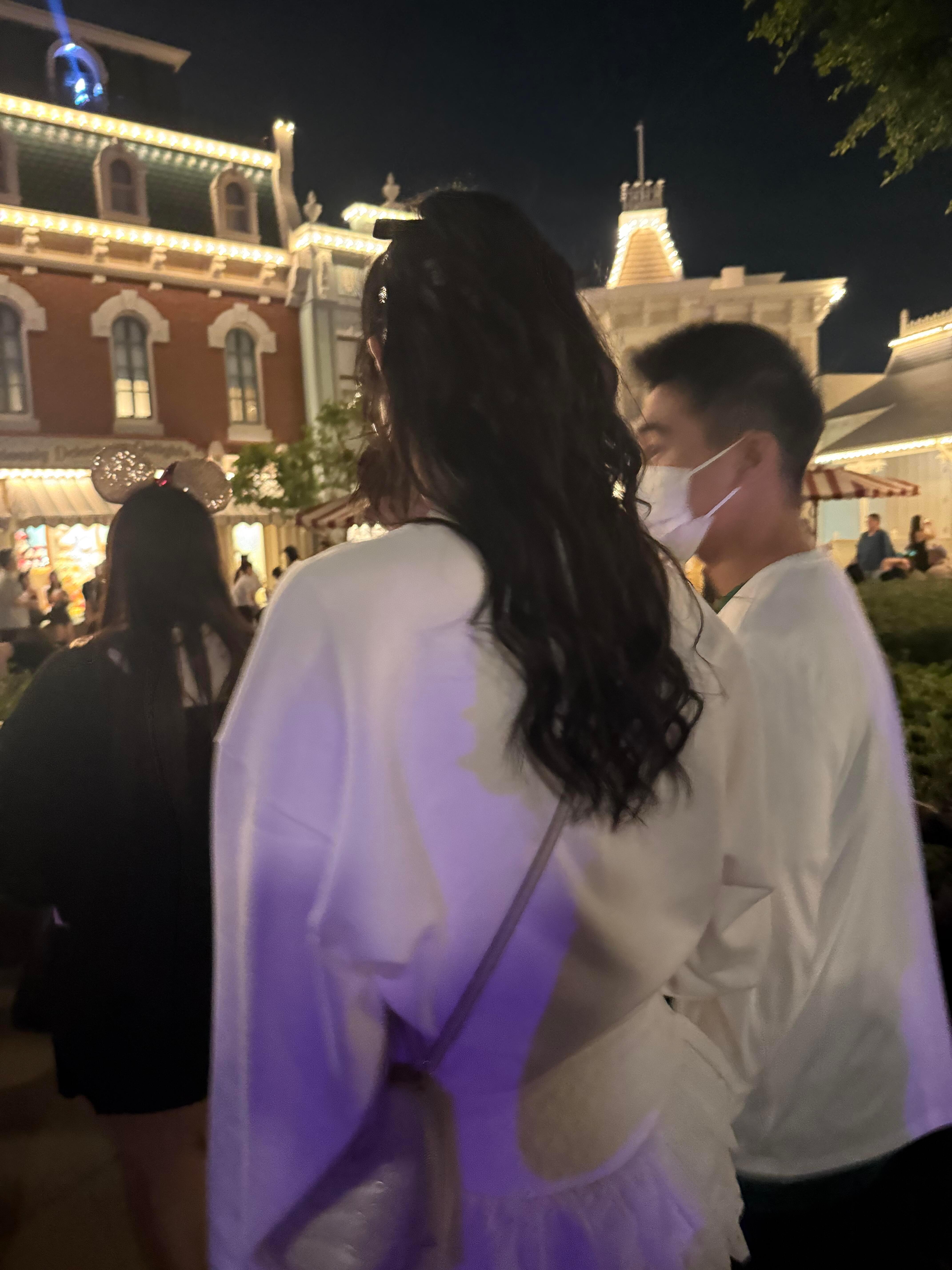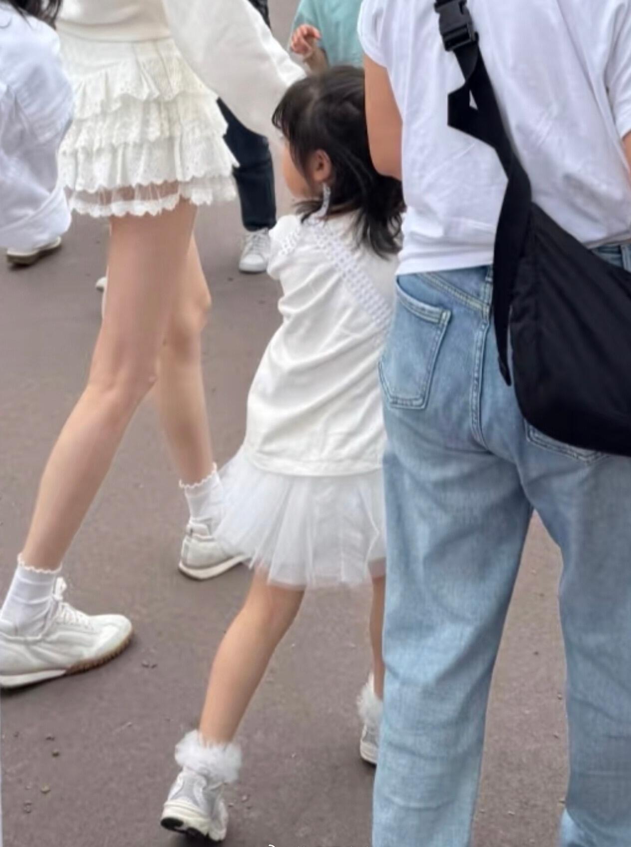 奚梦瑶何猷君带女儿逛迪士尼,亲子装穿搭肤白腿长